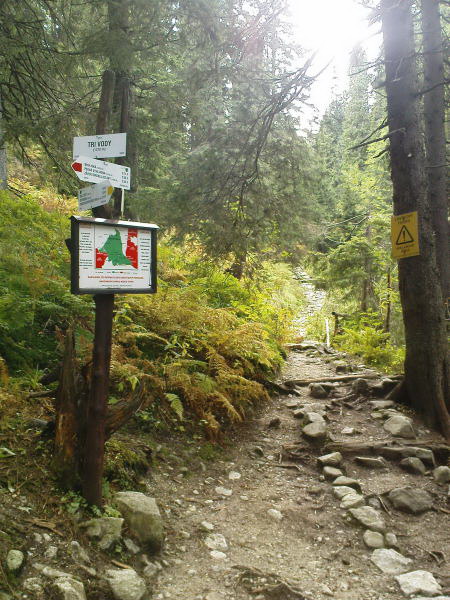Zo sedla Poľany vedie cik-cak zostupový chodník z hrebeňa do doliny Zadnej vody. Na jej „dne“ chodník pokračuje popri potoku na miesto s menom Tri vody. Tam sa cesta rozdeľuje, popri potoku trasa pokračuje až na parkovisko k nášmu autu.