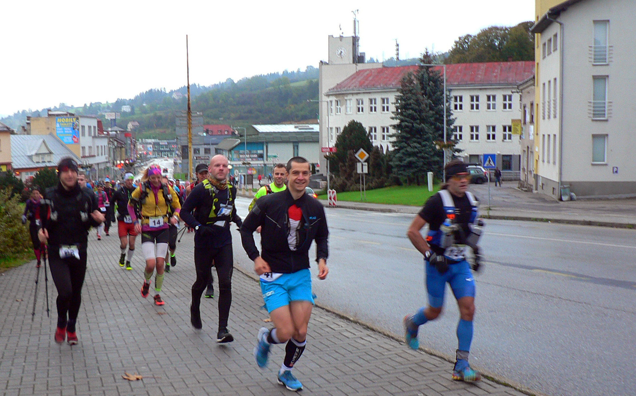 Divné pohľady hádžu ľudia už pred pol ôsmou, keď sa zlieza stádo pred mestským úradom. Potom „výstrel“ z megafónu a prvá, asi päťčlenná skupina mizne v diaľke medzi panelákmi. Toto nie je žiadny pozvoľný štart, nestíham ani zaostriť! Skúšam to s druhou skupinou (Ktorú vedie budúca víťazka ženskej kategórie!) a nestíham takisto, sakra! Už nech sme v kopci, pôjdu pomalšie...