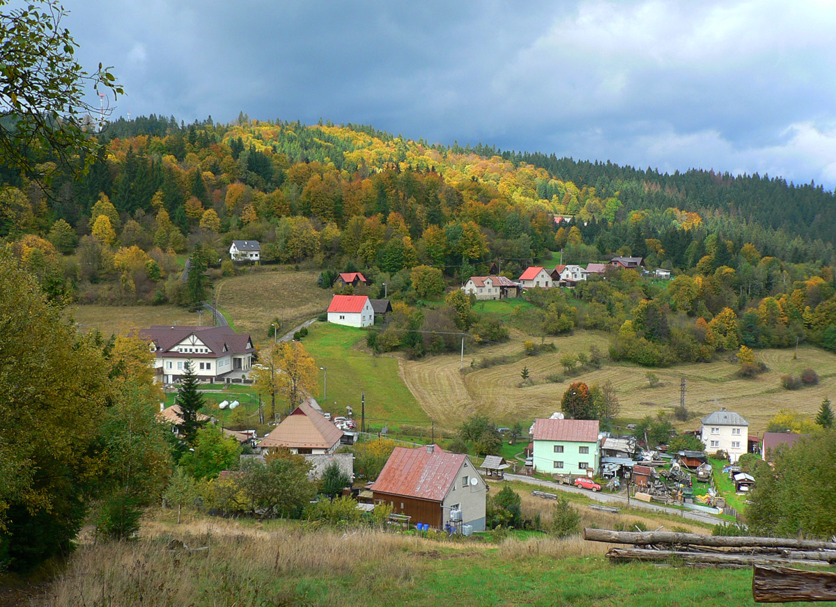 V kopci sa ale šmýka, tu by pomohli len tretry. Premočený chodník strmo hore ponad vlek na lúky, premočená tráva aj hlina pod ňou, musel po nás tankodrom ostať. Ale to len kúsok na postrašenie. Lesom na Kýčeru – to je prvá osada z milióna, tak si ju asi každý zafixuje, ostatné už sa zlievajú do jednej.