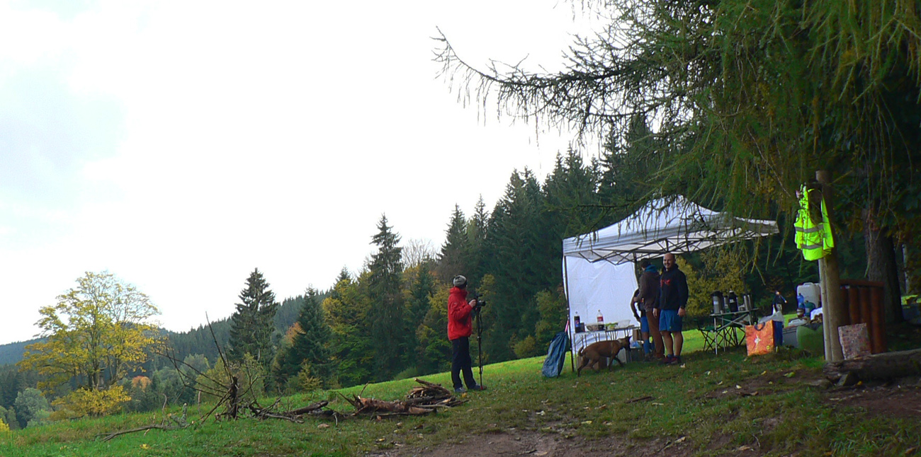 A začína pršať. Síce len prehánka, ale jedna z tisíca. Foťák do sáčku, foťák zo sáčku a tak dookola skoro celý deň. Nejde mi to z kopca, zakopávam furt. Len sa nezrakviť! Zákopčie a prvý krmelec: a nedáš si u nás niečo? Joooj, to je ešte skoro. Len dierky do karty, čipnúť čip a ide sa strmo hore. Najprv po lúke.
