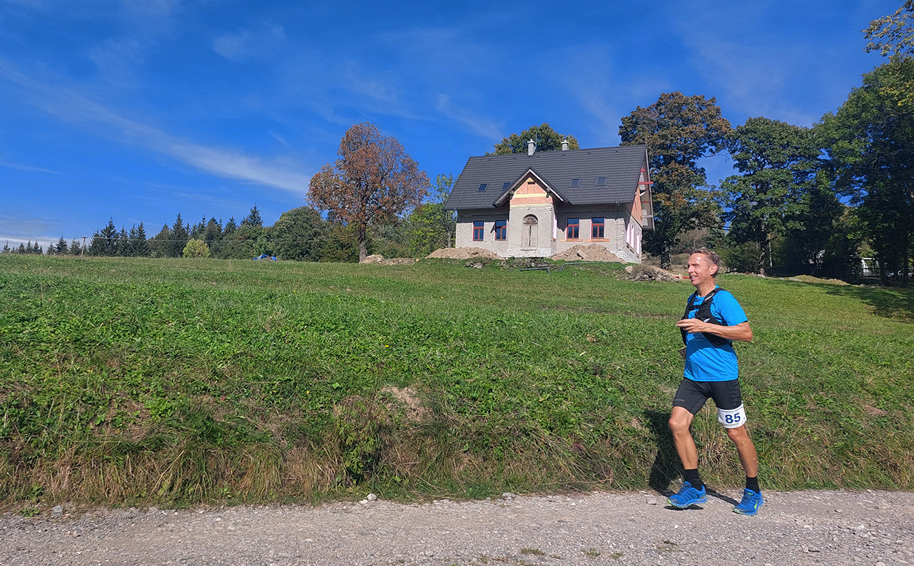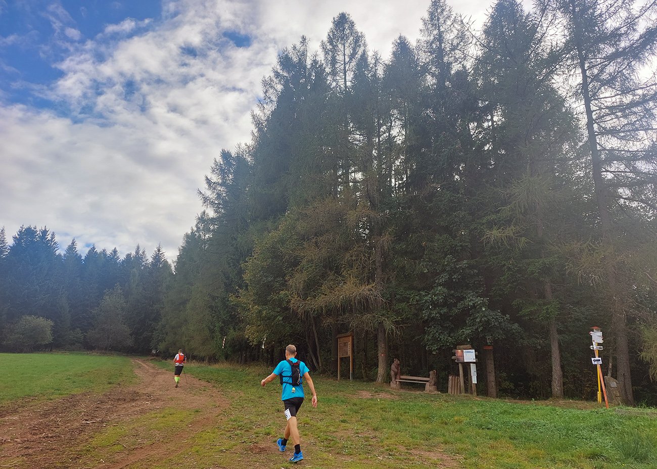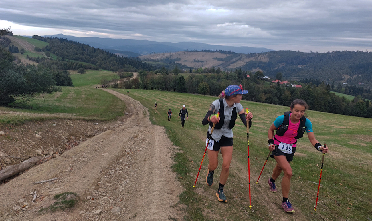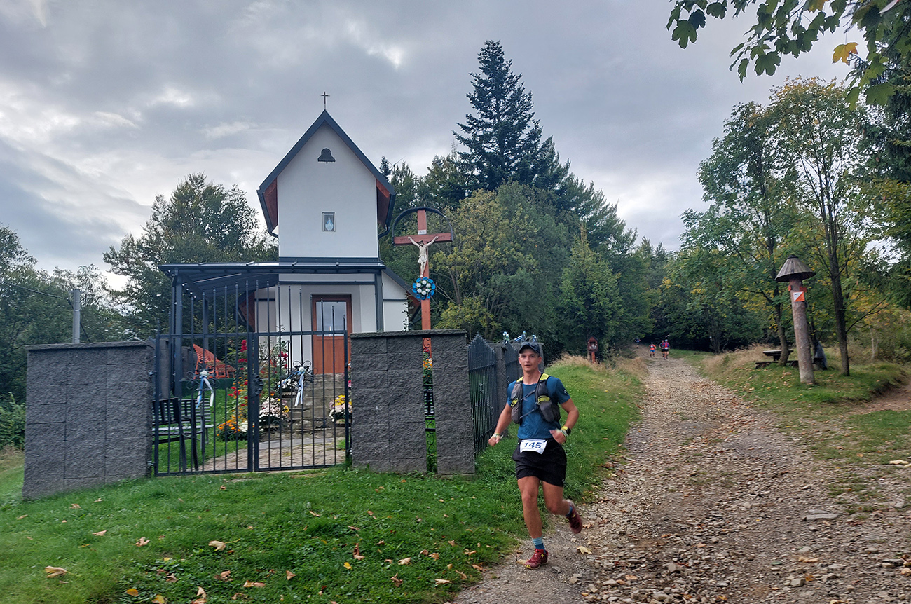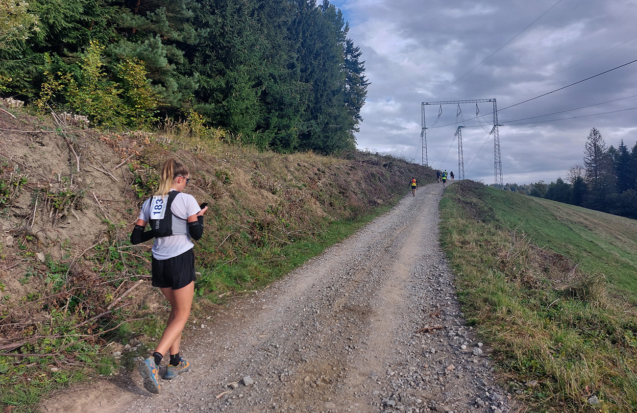 Úvodné kilometre sú tu v znamení dlhých výbehov aj zbehov, na jednu aj druhú stranu hrebeňa Javorníkov. Tak si hádam každý vychutnal v bočných dolinách a na svahoch tie rúbaniská a nové výhľady – a pod nohami v tých najstrmších sklonoch šutroviská. Ale jasné, že viac bolo pekných miest – pobehov po hrebeňoch a prebehov cez osady. Každý ešte plný síl, tempo závratné aj ďaleko za čelom. Len dve provokatérky si medzi tými prepaľovačmi vykluskávali, nabúravajúc ego spolubežiacim chlapom vykecávaním o tom, ako sa bežalo pred týždňom na maratóne v Košiciach za 2:51 :-) A že teda maratónsky osobáčik je najlepšie vyklusať stovkou... No hoďte na ne sieť!