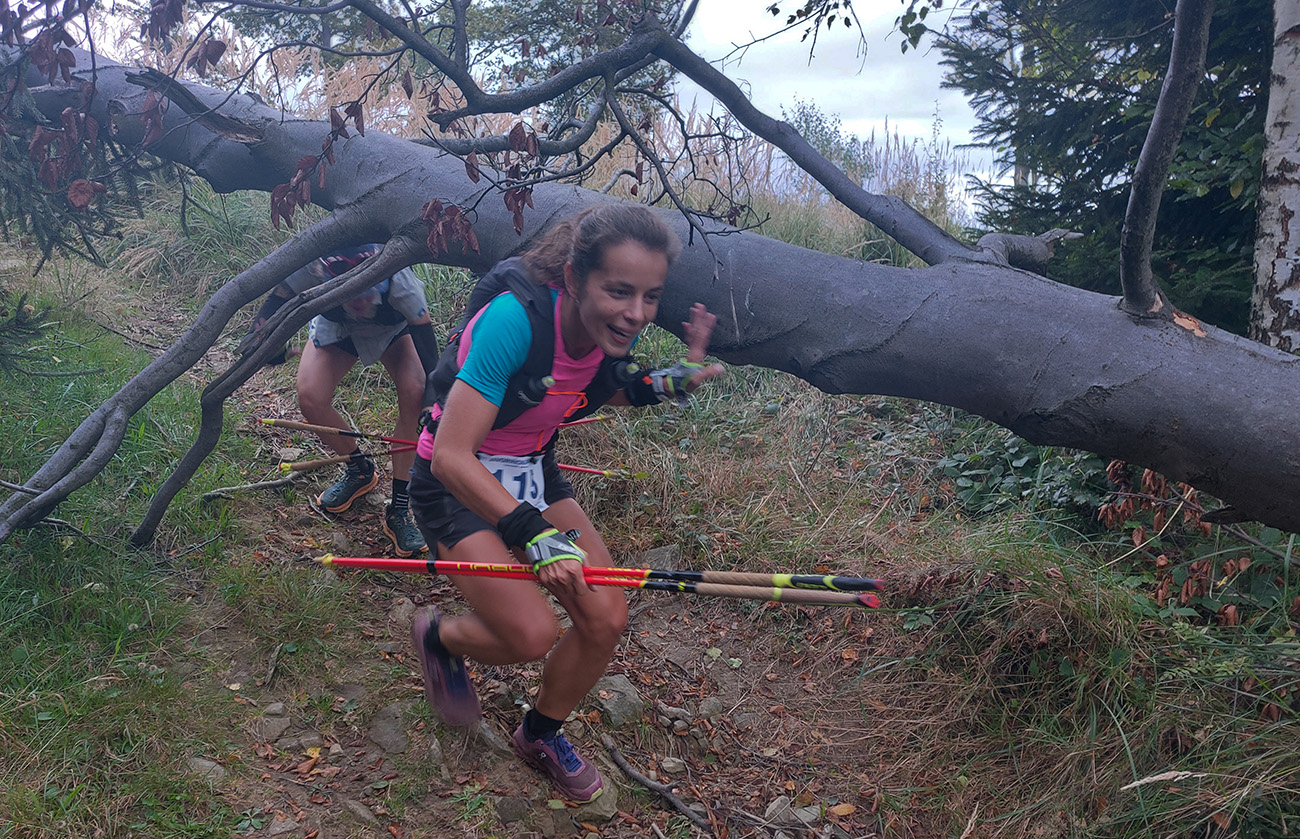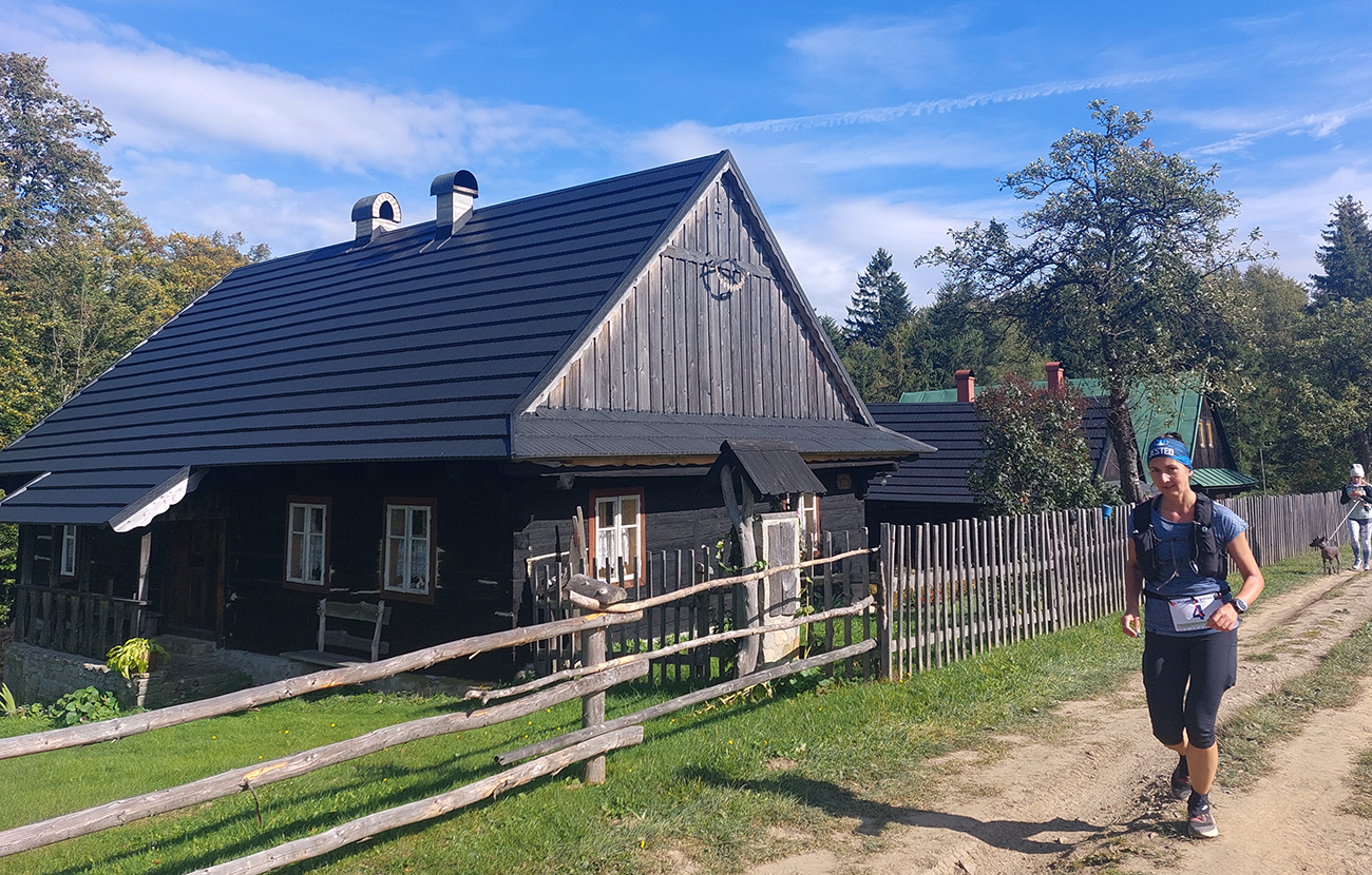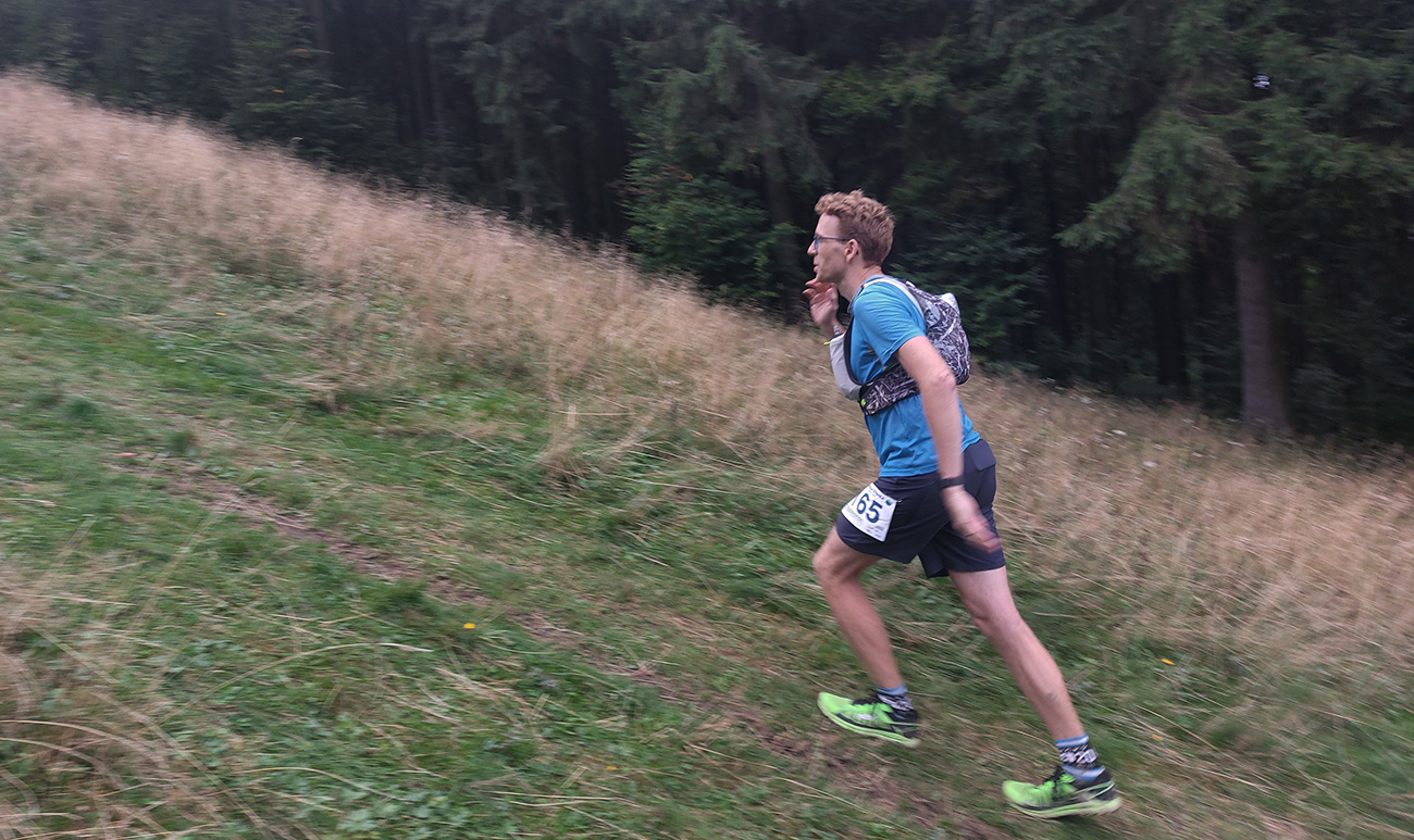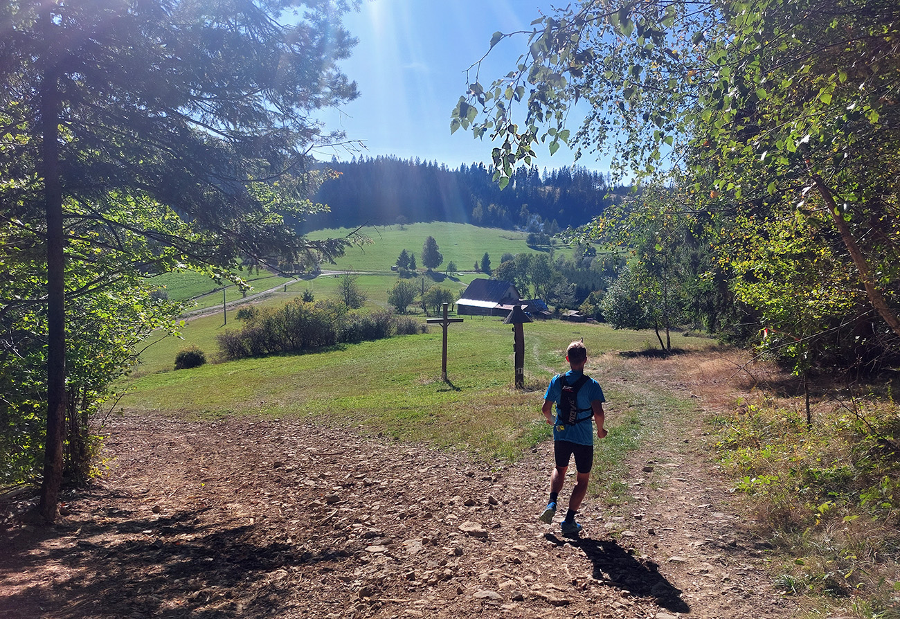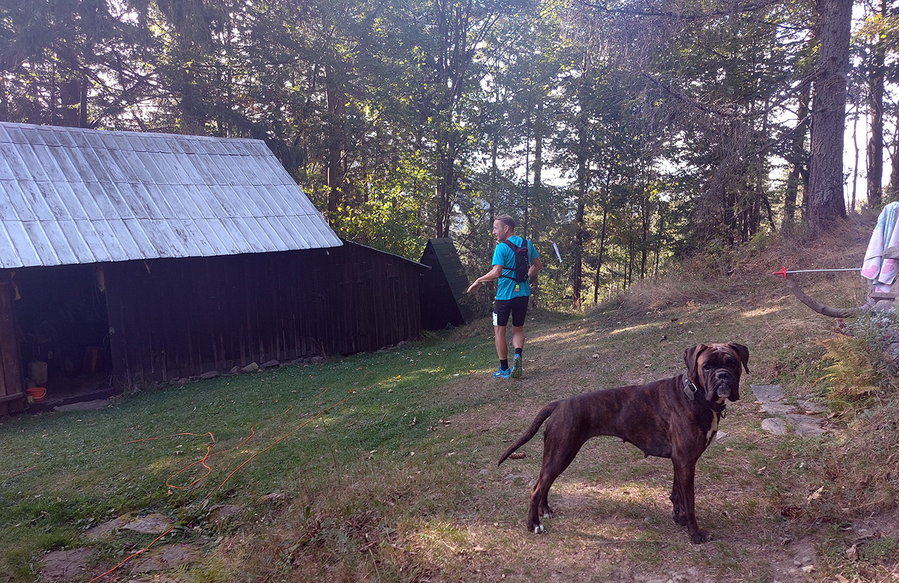 Úvodné kilometre sú tu v znamení dlhých výbehov aj zbehov, na jednu aj druhú stranu hrebeňa Javorníkov. Tak si hádam každý vychutnal v bočných dolinách a na svahoch tie rúbaniská a nové výhľady – a pod nohami v tých najstrmších sklonoch šutroviská. Ale jasné, že viac bolo pekných miest – pobehov po hrebeňoch a prebehov cez osady. Každý ešte plný síl, tempo závratné aj ďaleko za čelom. Len dve provokatérky si medzi tými prepaľovačmi vykluskávali, nabúravajúc ego spolubežiacim chlapom vykecávaním o tom, ako sa bežalo pred týždňom na maratóne v Košiciach za 2:51 :-) A že teda maratónsky osobáčik je najlepšie vyklusať stovkou... No hoďte na ne sieť!