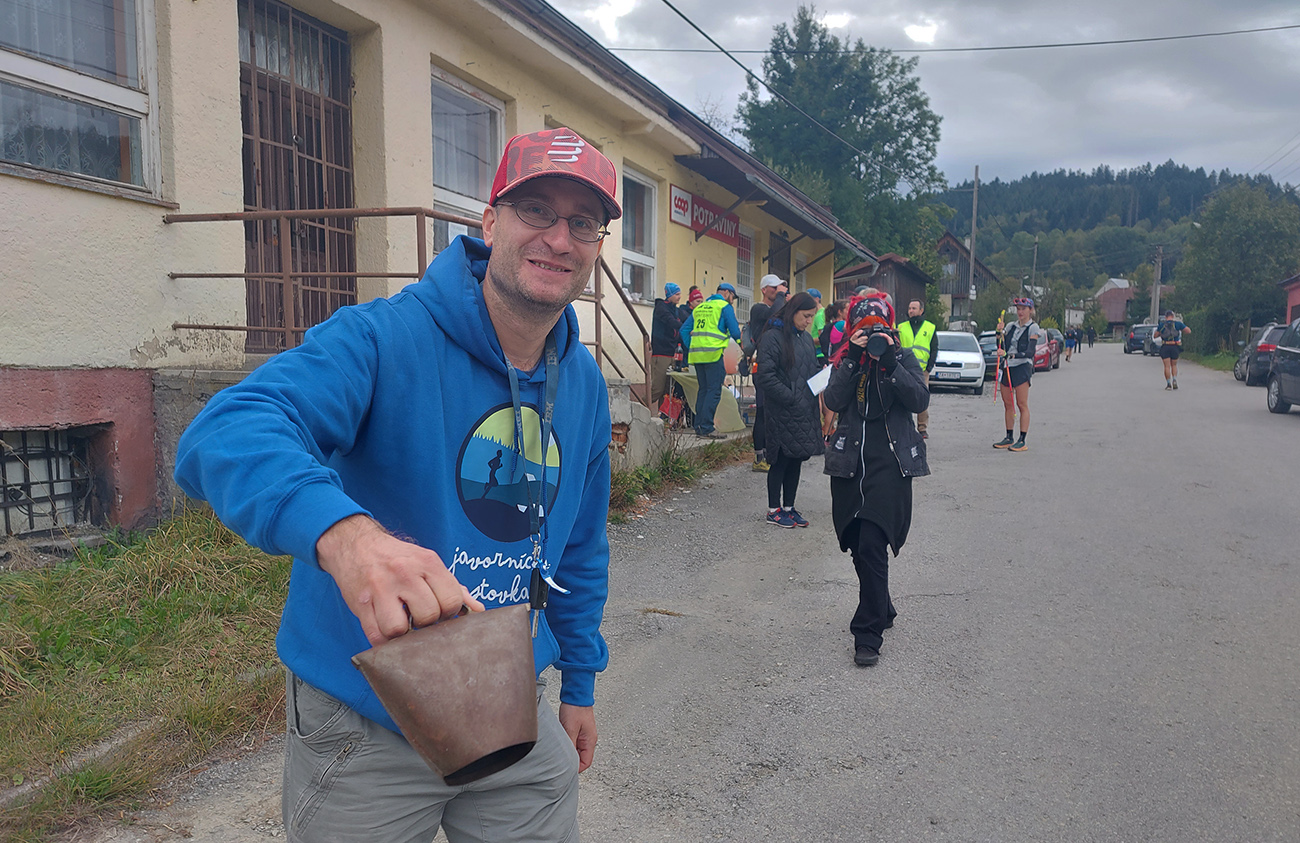 No ale pome priamo do akcie. Ráno správne hornokysucky chladné, pod 10 stupňov, a ako myši sa pred zimou tlačia do chalupy, aj tu sa dav natlačil do kulturáku. Tam ešte fičala prezentácia a odovzdávala sa batožina aj dropbagy, tak výhovorky sa našli. Až asi 10 minút pred siedmou musel El Prezidente Belo poriadne zahvízdať a vyhnať to všetko von. Lebo z pódia sa chcela okrem hlavného páchateľa SUT Rada Haracha prihovoriť tuším aj miestna podrichtárka. Len ju asi moc ľudí nepočúvalo, ktovie či je aj na také zvyknutá :-) Hlavnou páchateľkou J100 je ale Ľubka Fenclová, na to netreba zabúdať pri vďakyvzdávaní -aj keď ona sa vždy tvári popri Náčelníkovi tak nenápadne, že? Všetko sa inak odohrávalo aj pod prísnym dozorom pána Petra Jilemnického (inak v cieli pre zmenu na mravnosť dozeral P. O. Hviezdoslav):