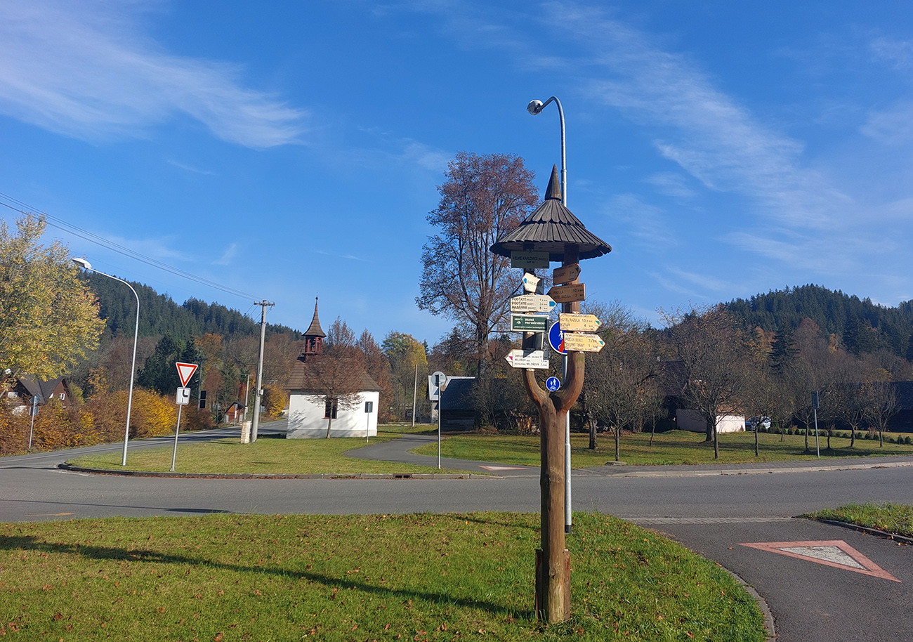 V doline Vsetínskej Bečvy zasa viac áut. Najskôr sme ten frkot chvíľu sledovali od „kapličky“ na križovatke, prežúvajúc sójové rezy zo zásob, aby sme tú horskú kofolu z Franu trochu zahustili. Potom sme chvíľu obabrávali cestu po cyklochodníku, ale pri našej vyššej rýchlosti nás rýchlo začali otravovať tie nespočetné zákruty, obrubníky a drncanie po zámkovej dlažbe. Dole dolinou to ale ubiehalo chytro, tak po chvíli sme už v Novom Hrozenkove brzdili do poslednej odbočky smerom cez hrebeň – na Kohútku. Ešte že som netušil, čo to na mňa vymyslel ten človek, ktorý si už ozaj môže začať hovoriť „budúci bývalý kamarát“. Alebo ani on nevedel? Neverím, je tu doma!