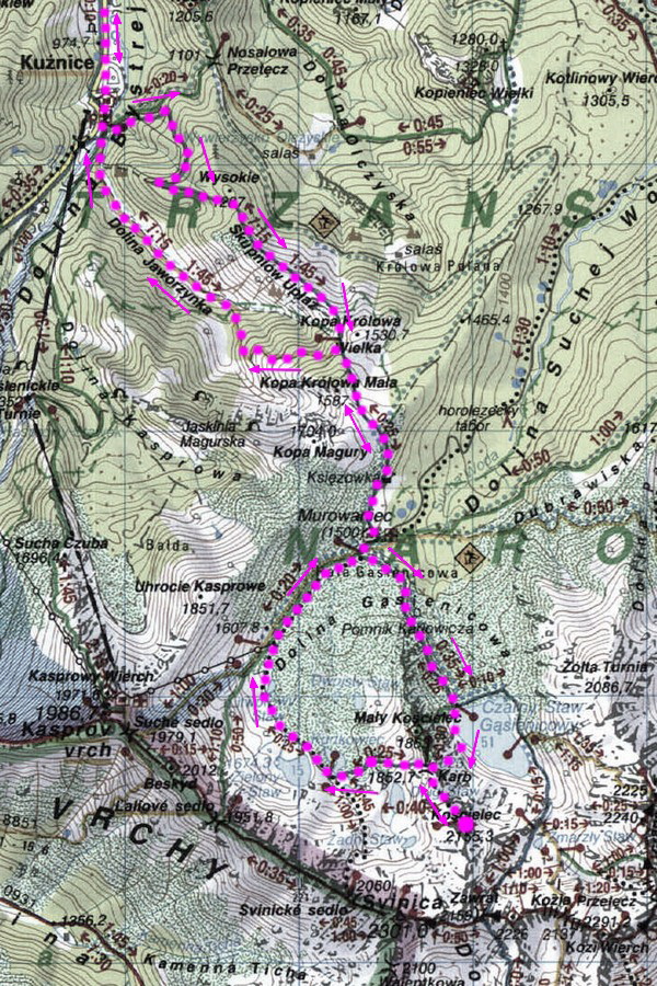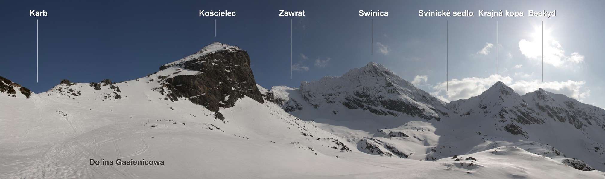 Páchateľ sa vracia na miesto činu. A turista do hôr, ktoré mu učarovali. Tak sa stalo, že naše kroky po roku opäť viedli do zasnežených poľských Tatier. Pri otázke „kam?“ padlo slovo Kościelec. Nik sa neodvážil namietať. Už ten názov pôsobí majestátne. A keď ujo Google vypľul zopár obrázkov, bolo rozhodnuté. Celá výstupová trasa sa dá krásne zokruhovať a varianta, ktorú sme si (nevedomky) vybrali, sa ukázala ako ideálna pre zimnú akciu. Začíname už tradične v Kuźniciach. Na konečnej pod lanovkou sa od minulého roku zmenilo to, že parkovné v eurách zobrať nechcú a Złote zase nemáme my. V rámci snahy o akýsi kompromis nám je umožnené nakoniec parkovať za 15€! Trochu moc - krčíme nosom a otáčame to naspäť. Asi o 1km nižšie sa nám darí nájsť parkovisko, kde ujo vezme len 5€ za celý deň. Tých 10 minút šľapania navyše nás ozaj nezabije. Treba počítať aj so vstupným do národného parku 4 zł (1,30€), študáci za polovicu.