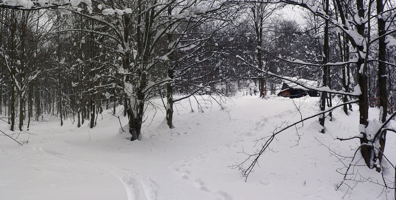 Jediná výhoda množstva snehu: lyžovačka kade chcem, dole na zvážnicu. Ale potom už len na pásoch, aj dole kopcom, aby som sa stihol vyhýbať nastraženým pazúrom Fredyho Kruegera. A pretláčať záveje cestou do Ľubochnianskeho sedla.