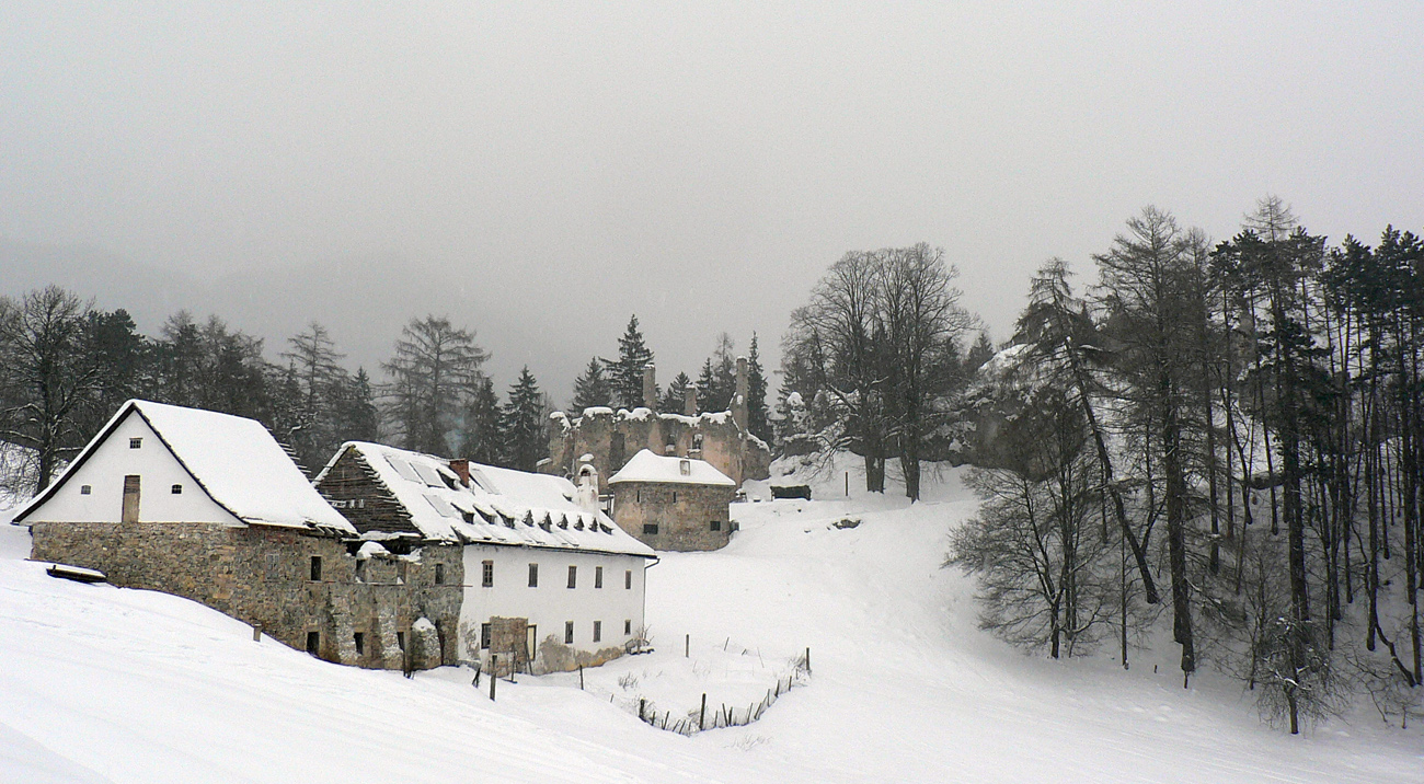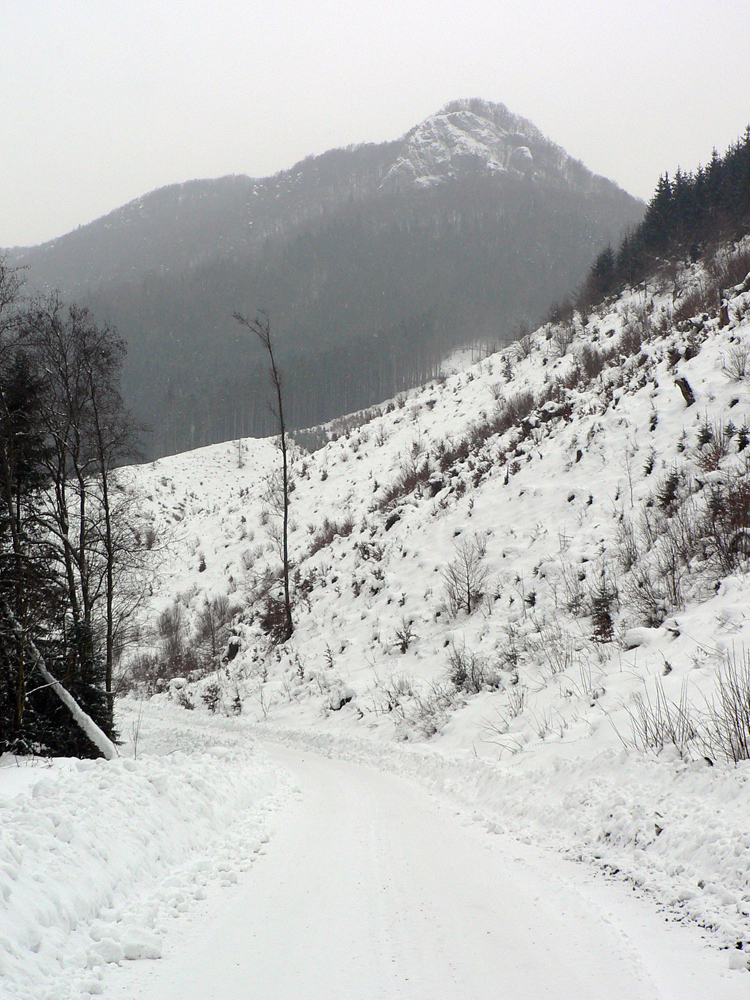 Ale potom, na ceste v doline, šok: len sekundu príjemný, že cesta prehrnutá. Metrové mantinely! Ale hneď na to šok nepríjemný: cesta posypaná, a poriadne hrubým štrkom! Načo je štátnym lesom takýto luxus? A popri ceste niet kade na lyžiach. Sakra!!! Hodinová pešovačka do Sklabinského Podzámku, samozrejme spoj fuč, ďalší o dve hodiny...