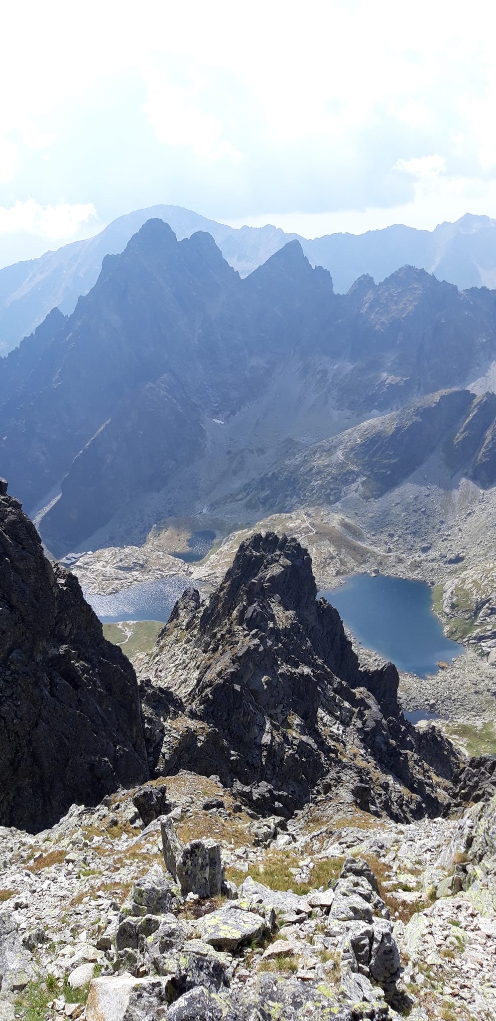 Po večernej, výdatnej búrke je všetko mokré a slizké. Z Jastrabej veže do sedla, kvôli dvom nepríjemným krokom, hádžeme radšej zlaňák.