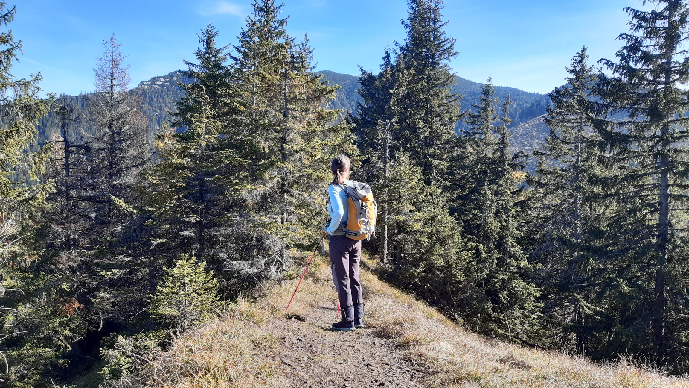 Naspäť sa vraciame tou istou trasou. Nuda nehrozí, otvárajú sa nám výhľady, ktoré sme pri stúpaní mali za chrbtom.