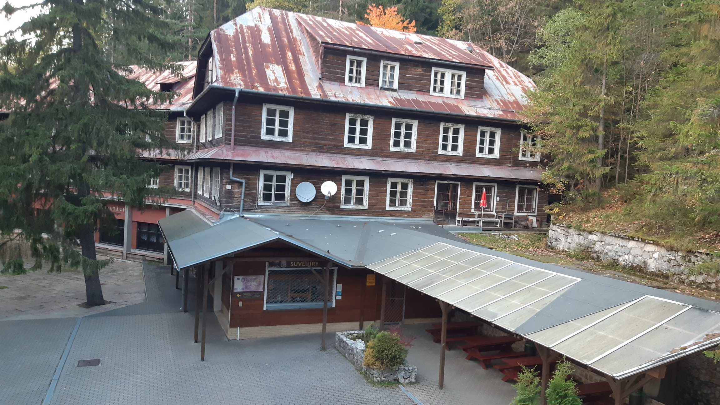 Autom z Popradu to na miesto štartu máme pohodlných 45 minút. Na parkovisku, ktoré slúži predovšetkým návštevníkom jaskyne, zaplatíme parkovné a vyrážame na túru. Po krátkych serpentínach prechádzame okolo vchodu do jaskyne a po modrej značke stúpame hore ešte zachovaným smrekovým lesom.