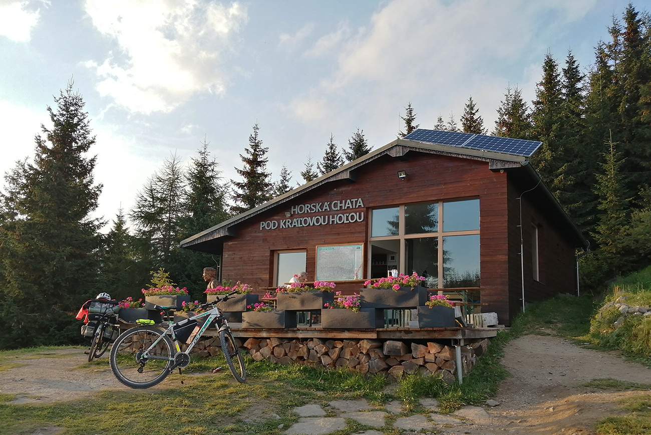 Na rúbaniach a priesekoch v zapadajúcom slnku, v mäkkom protisvetle mihá sa vzduch. Ako to? Fatamorgána tu na kopci? To len milióny mušiek z trávy a pionierskych vŕb čakajú na mňa. Neštípu, ale trochu šteklia. Dobrých 300 ks som dovliekol až na chatu a tam som ich striasol, čiernych (doslova aj farbou) pasažierov. To preto som nevládal, vysvetlenie sa vždy nájde. Na chate fotím, tankujem kofolu a do zásoby cuc-džúsik a keksík. Chvíľu odfúknem, dofúkam gumy na tvrdšie, lebo teraz začne asfalt, a to sa pôjde lepšie aj rýchlejšie. Ako meňavka, prispôsobím sa podmienkam. Traverz v úboči smerom na Kráľovu skalu idem pomaly a obchádzajúc výmole v hrubom asfalte a šotolinové nánosy premýšľam, kedy sa už cesta viac položí. Ale nechce sa jej. Príjemne som prekvapený, keď naľavo je studnička, ktorá zbiera vodu z celého svahu. Samozrejme, hygienická očista je základ dobrého výsledku, a ako sa ukazuje, vodné chladenie je tiez účinné od hlavy po päty (aspoň na pár minút). Takto oživený znova sadám na mašinu a do sedla Snehová jama už dokrútim celkom fajn. Aj teplota klesla, slnko už nie je, všade úplné ticho, len gumy počuť ako lepia na smolný asfalt, tu a tam. Bike ide tichúčko ako sonda vesmírom, dobre ho v servise nastavili, a to už pritom pobehal v terénoch aj po ceste 500 km za posledné dva týždne.