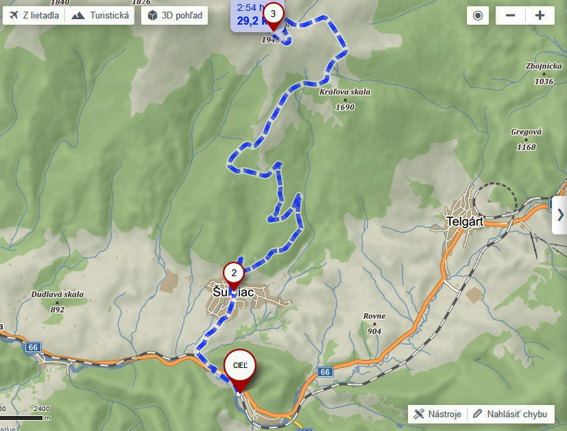 Jazdené 15. augusta 2021 podvečer. Údaje z mapy.cz: 29.2 km dĺžka, 1160 v.m. prevýšenie.