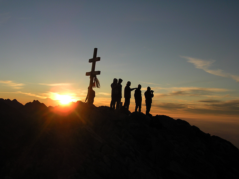 Hore panuje neskutočný pokoj. Nádherná panoráma okolitých tatranských končiarov sa pomaly začína farbiť zapadajúcim slnkom. Posledné lúče sa odrážajú v Liptovskej Mare, ktorá z výšky pôsobí ako zabudnuté zrkadlo. Sedíme v nemom úžase a nechápeme. Občas niečo odfotíme. Dojmy sú to silné a úžasné. Z Kôprovej doliny ručia jelene, počuť ich až sem hore. Bivakujeme pár metrov od kríža. Je bezvetrie. Noc je jasná a napriek tomu plná hviezd. Sme ako v nebi... ale my predsa sme v nebi! Ten pocit, keď sa plní sen, je neopísateľný.