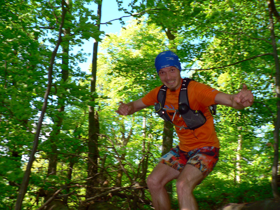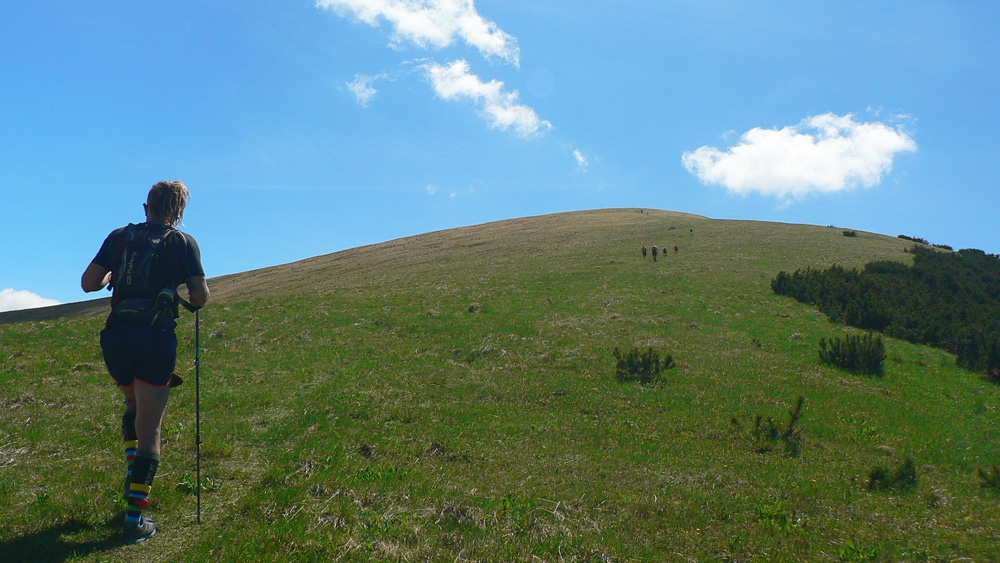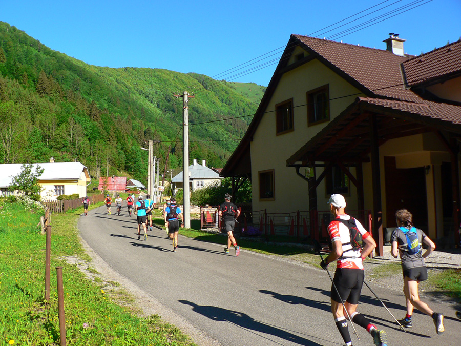 Štart ešte za ranného chládku o siedmej hore dedinou, ale zahriatie asi bolo rýchle do tej steny na Úplaz. Stade dole do Bystrickej doliny, aby sa všetci mohli vyštverať na Kráľovu studňu. Brutálny zbeh do Gadera a brutálny stupák na Ostredok. Trochu vydýchať proti vetru po hrebeni na Ploskú a dlhý zbeh po lúkach do Vyšných Revúc. Asfalt a šotolina cestou na Veľký Šturec a posledný technický úsek po hrebienku do východného Prašnického sedla. Traverzovým lesným chodníčkom do Prašnice. Odtiaľ už len po cestách. Dole do Valentovej, hore cez celé Rybô a po zvážnici, dosť nahusto vystlanej makadamom, kolísavo hore - dole do cieľa.