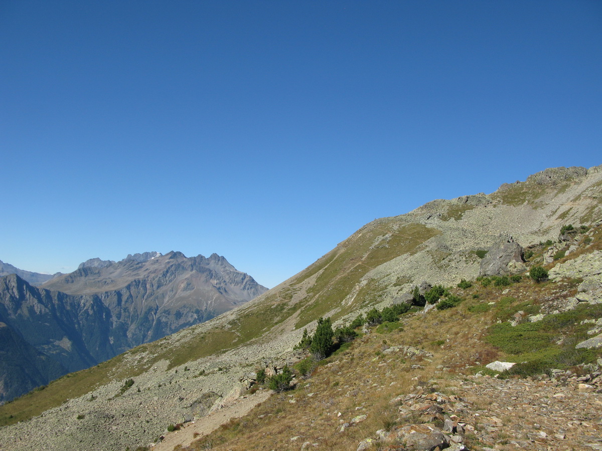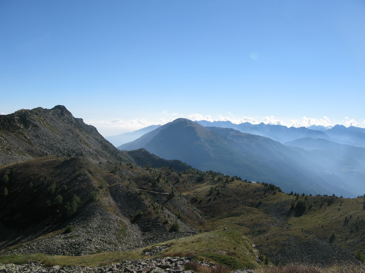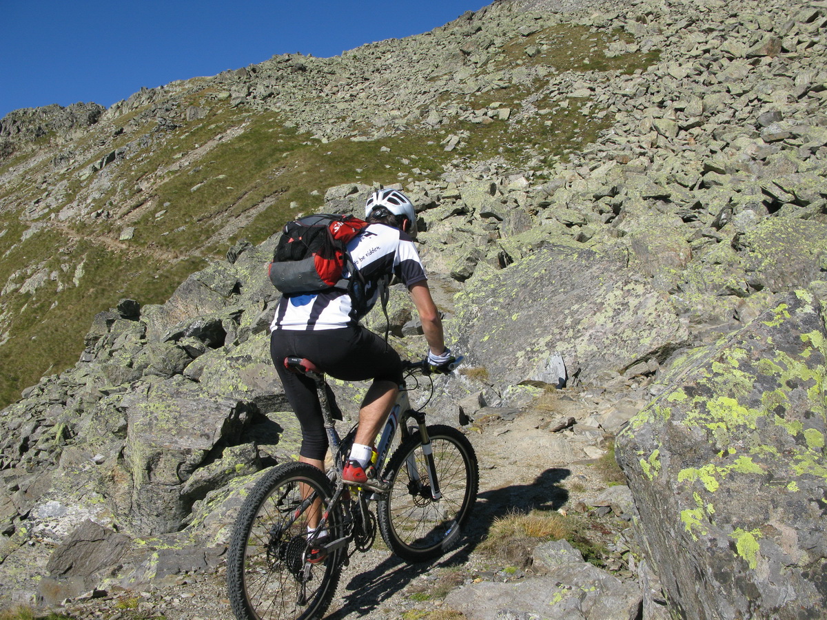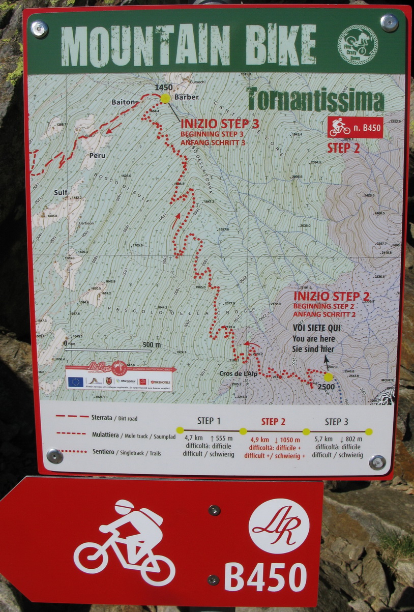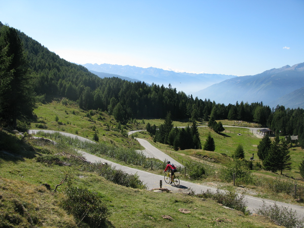 Po prejazde sedlom Mortirollo (Passo Foppa) je ďalšia trasa dobre značená. Ešte chvíľu idem po asfalte a potom stále odbočujúc vľavo sa už dostávam na štrkovú cestu. Nasleduje stúpanie. Sedielko s výhľadmi a traverz na začiatok zjazdu. Zjazd začína o dvetisíc výškových metrov vyššie, ako som začal dole v doline. Sakra, toto u nás doma jednoducho nemáme...