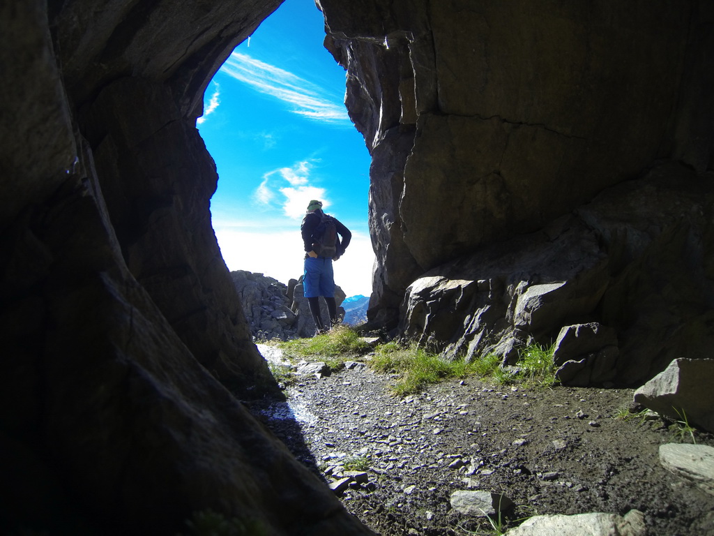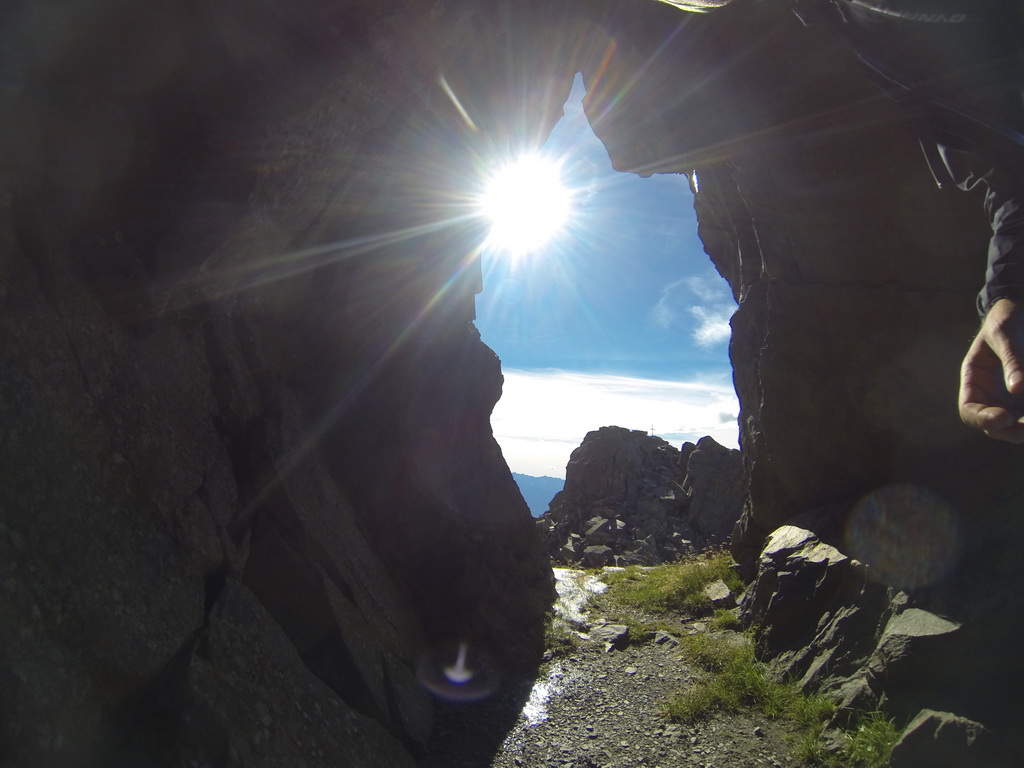 Na začiatku zjazdu je ešte možnosť vybehnúť si peši na vyhliadku. Je tam staré opevnenie. Deň predo mnou tu bol Miro, pofotil to a tak sa rozhodujem, že vyhliadku vypustím. Krásne výhľady ma prinútili po dlhšom čase použiť opäť samospúšť.