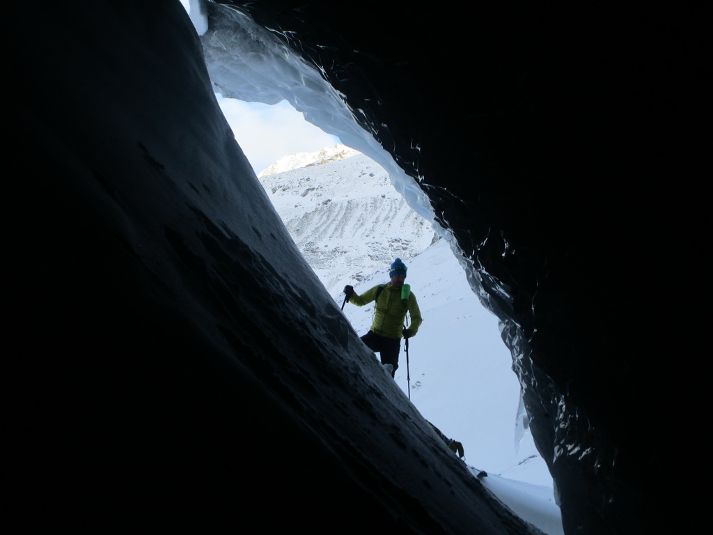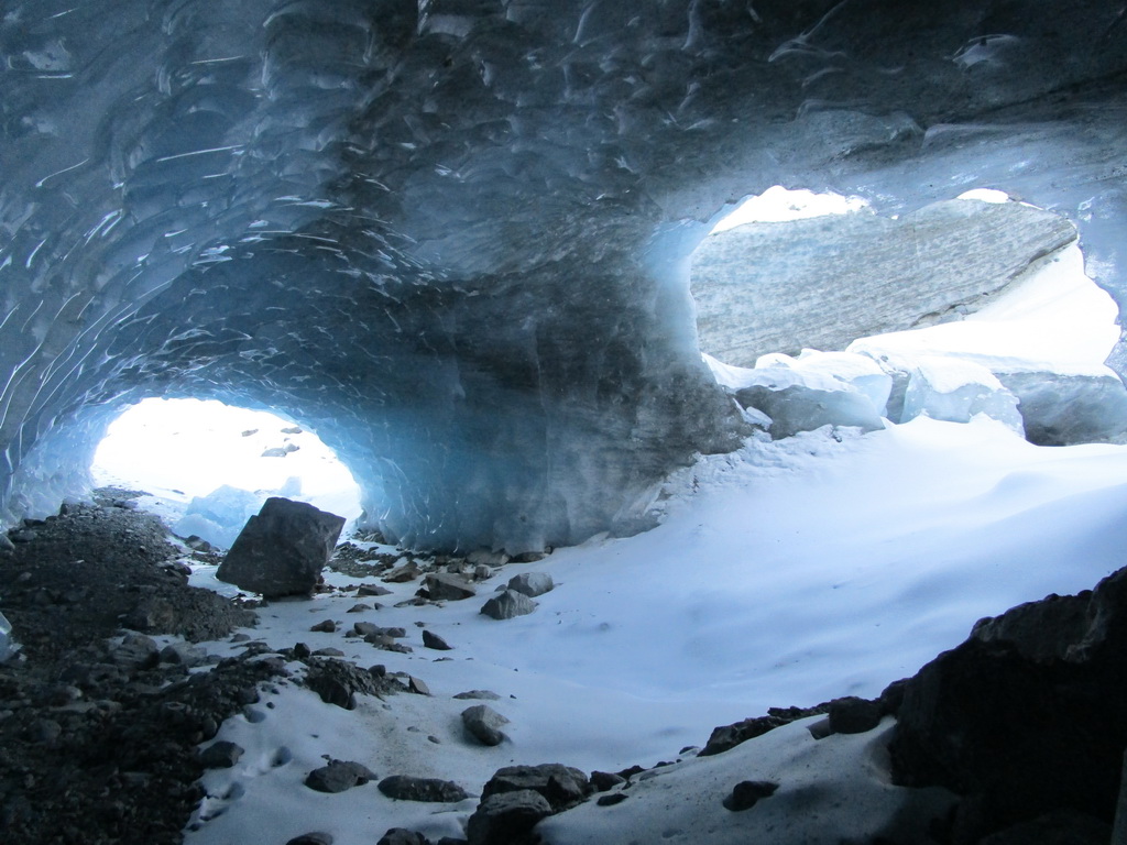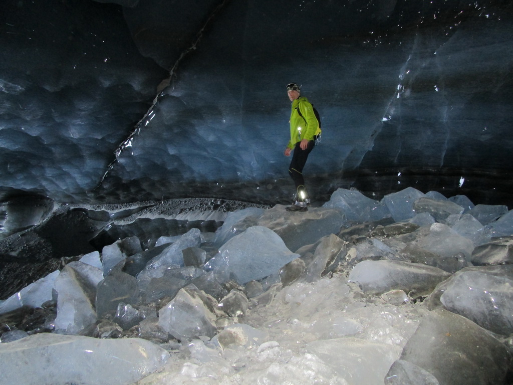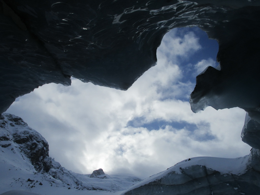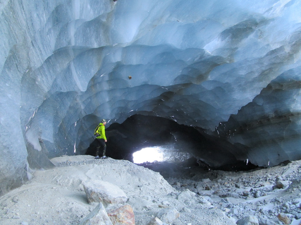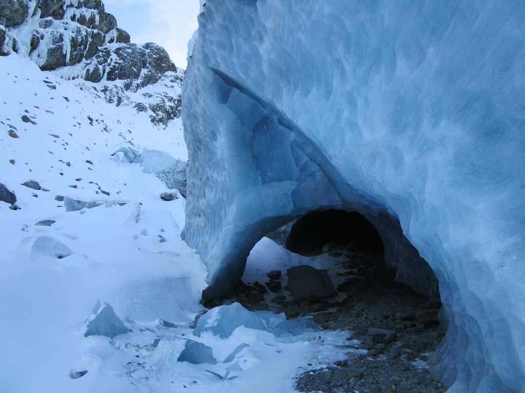 O ľadovcovej jaskyne vo Val Rosegu som tu písal už minulý rok. V lete vznikajú pôsobením vody a potôčikov ktoré podmývajú ľadovec zaujímavé jaskyne a rôzne ľadovcové útvary. Všetko je o to zaujímavejšie, že v zime, keď v jaskyni potoky netečú dá sa ísť do jaskyne všetko pekne v kľude pozrieť. Dostanete sa takto pekne ľadovcu pod kožu a pohľadkáte si ľad pekných pár tisíc rokov starý. Pôsobením vody sa z roka na rok všetko rýchlo mení a tak som využil príležitosť a navštívil jaskyne aj po roku.