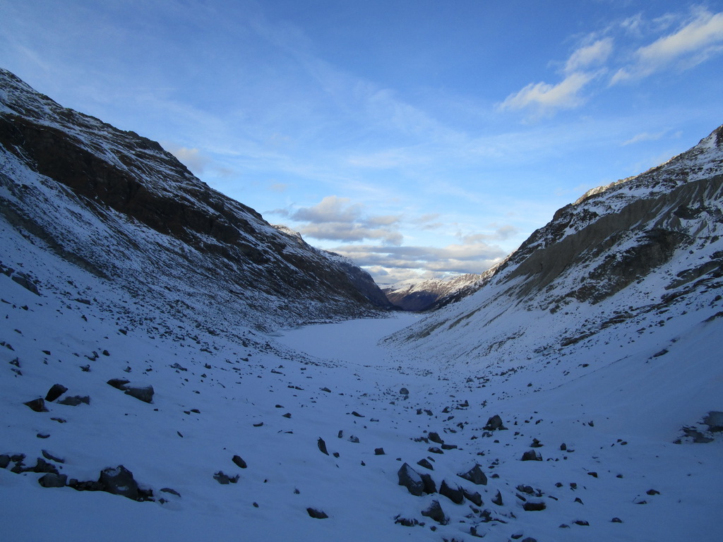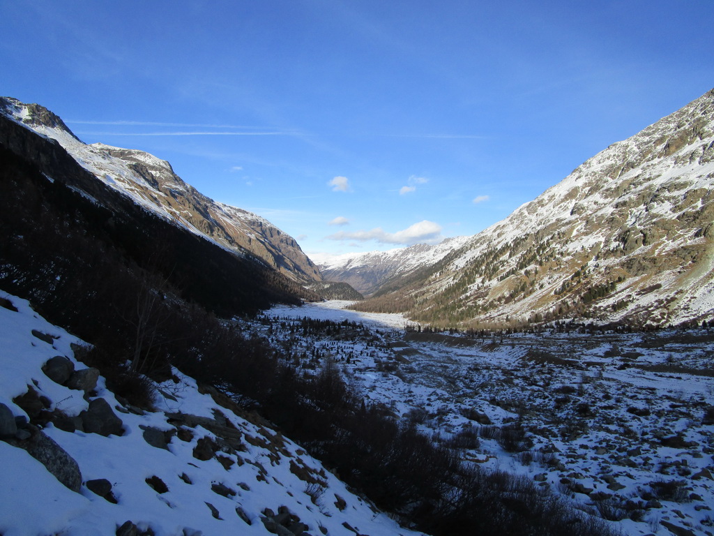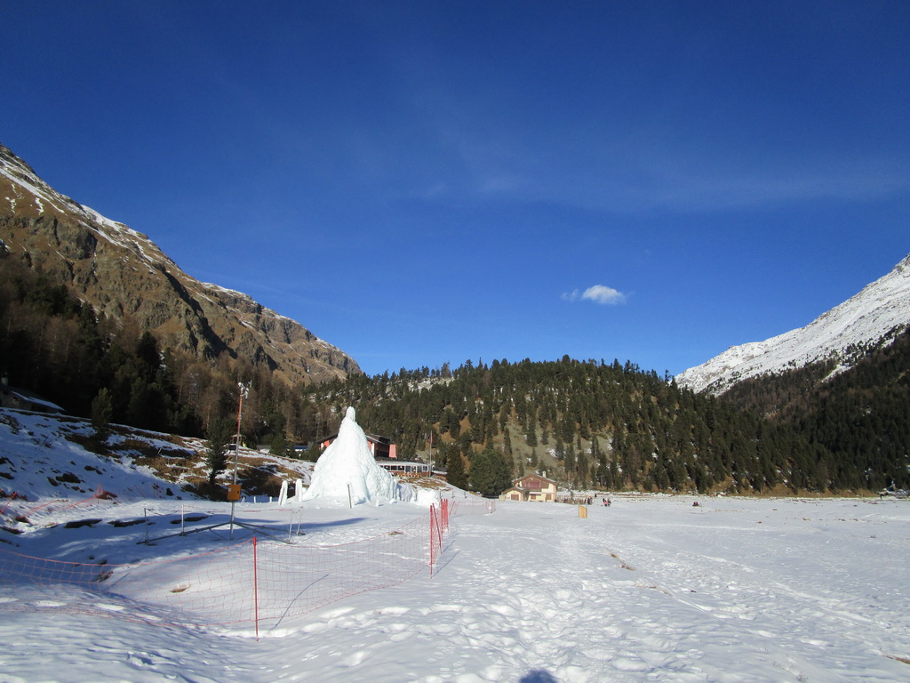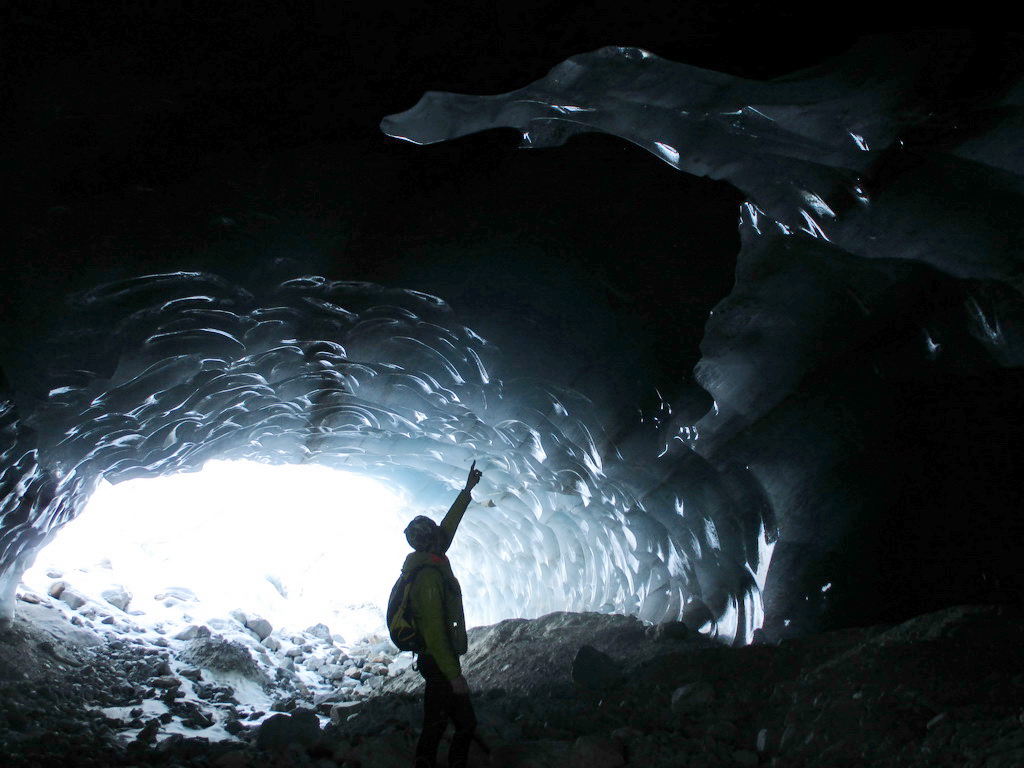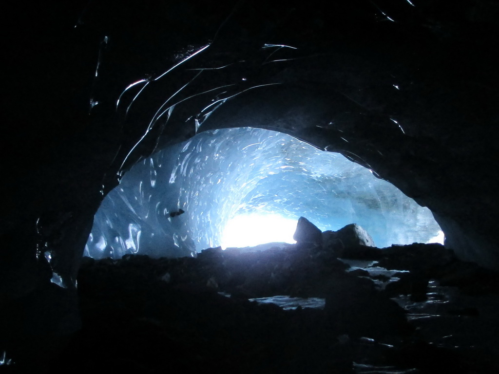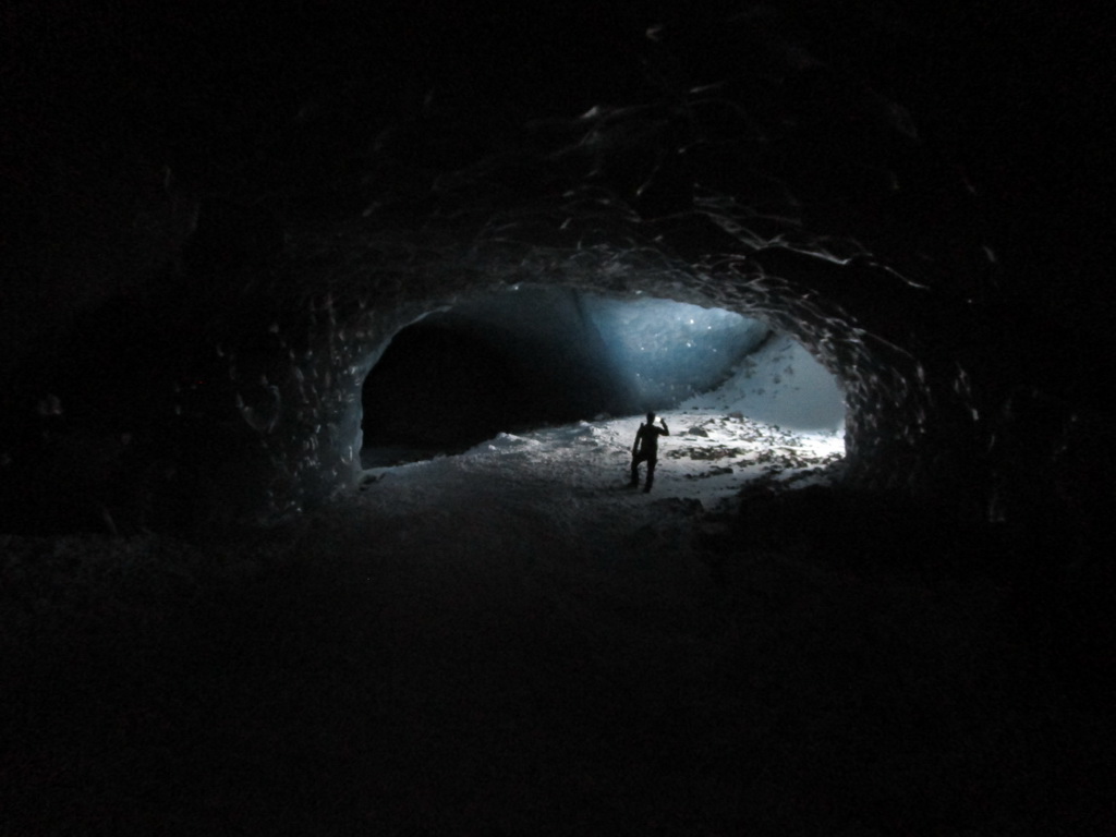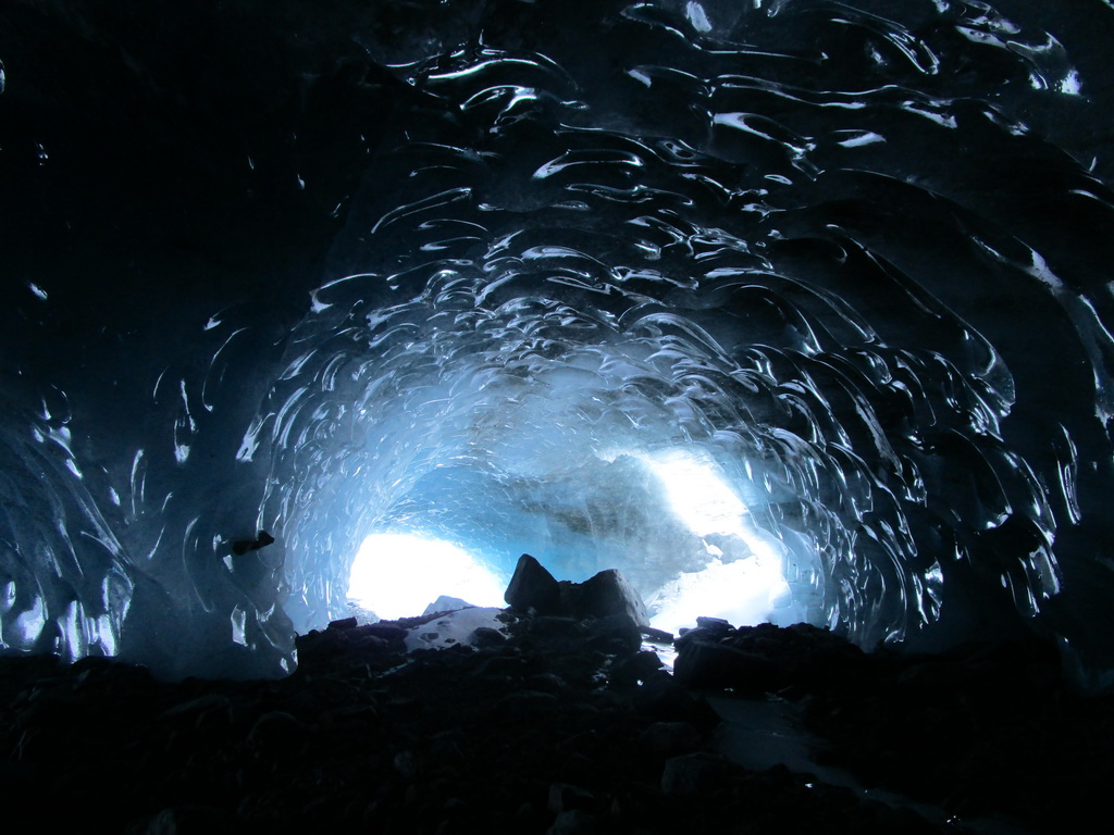 O ľadovcovej jaskyne vo Val Rosegu som tu písal už minulý rok. V lete vznikajú pôsobením vody a potôčikov ktoré podmývajú ľadovec zaujímavé jaskyne a rôzne ľadovcové útvary. Všetko je o to zaujímavejšie, že v zime, keď v jaskyni potoky netečú dá sa ísť do jaskyne všetko pekne v kľude pozrieť. Dostanete sa takto pekne ľadovcu pod kožu a pohľadkáte si ľad pekných pár tisíc rokov starý. Pôsobením vody sa z roka na rok všetko rýchlo mení a tak som využil príležitosť a navštívil jaskyne aj po roku.