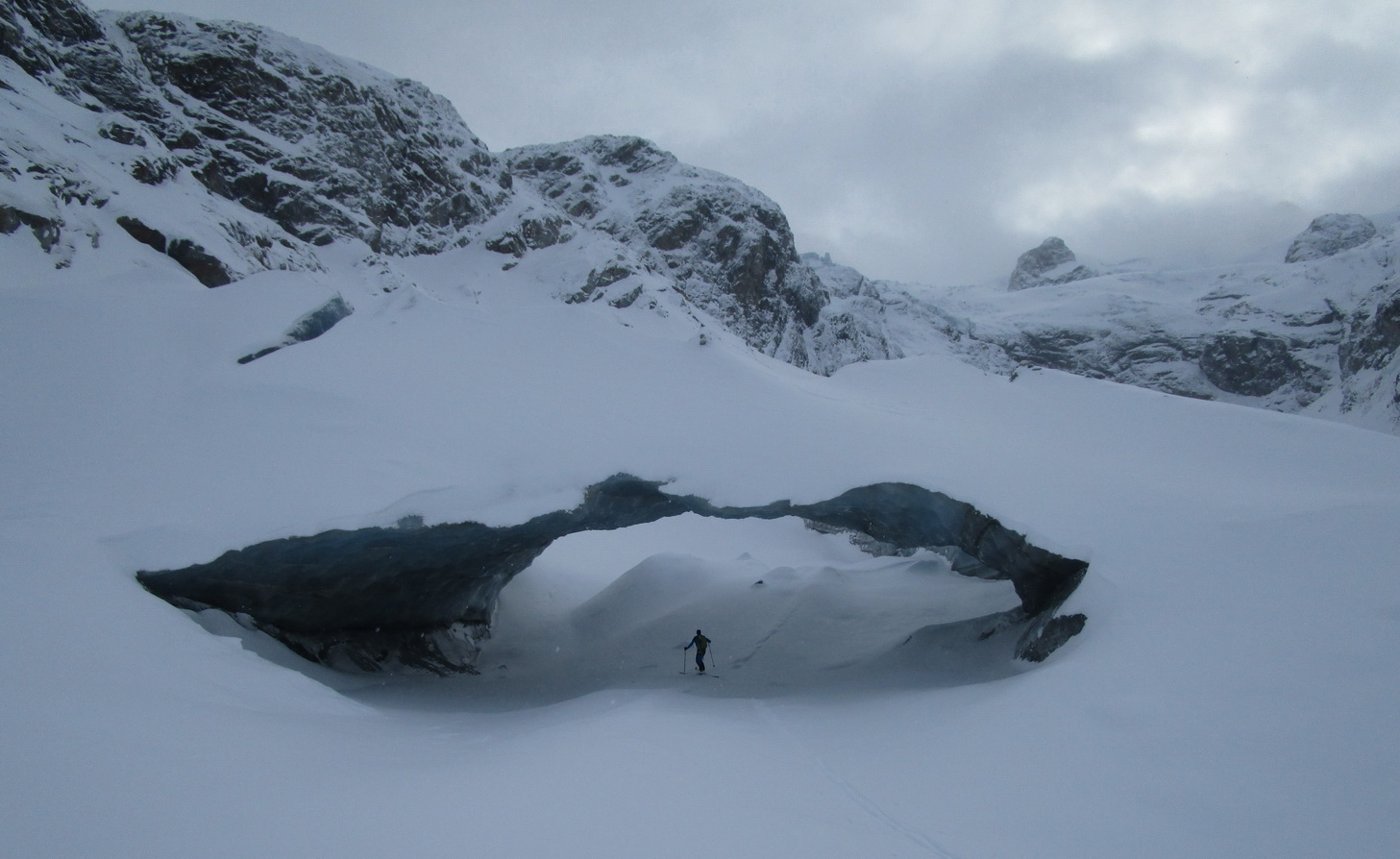 Aktualizované: Do tretice z ľadovcovej jaskyne vo Val Roseg. Tentoraz si môžete pozrieť aj kratučké video. Spodná jaskyňa sa roztopila takmer celá ostalo po nej ale fotogenické ľadové okno. Horná jaskyňa ešte existuje ale čerstvý sneh otvor asi čoskoro uzavrie. Boli sme v nej cca na vianoce 2017.
