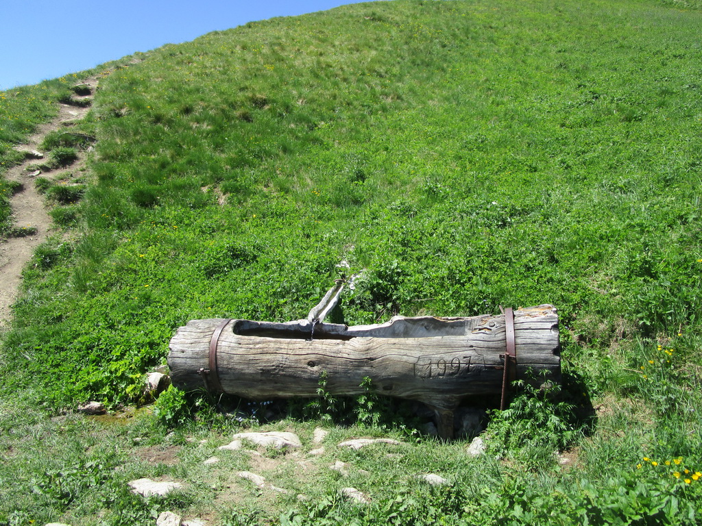 Štartujem tak ako mi v obchode poradili. z Parkoviska pri benzínke najprv chodníčkom nad galériou chrániacou cestu pred lavínami a potom už smrekovcovým lesom pekne hore na hrebeň. Obehnem pár ľudí a potom už nikto. Značkovaným chodníkom prichádzam ku drevenej chatke, prameň hneď pri nej potešil. Naberám všetko do plna tak ako mi poradili.