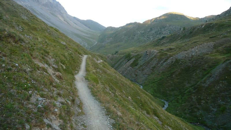 Z Livigna sme vyrazili šotolinovou cestou popri jazere k ústiu doliny Valle Alpisella. Do sedla Passo de Alpisella je to poctivý výšľap šotolinovou cestičkou o takmer 500 výškových metrov. Sedlo je 2299m vysoko. Zjazd k jazeru Giacomo di Fraéle je najprv po šotoline, no po chvíli odporúčam odbočiť doľava na turistický chodník, ktorý je nádherným singletrackom. Prichádzajú prvé pocity eufórie.