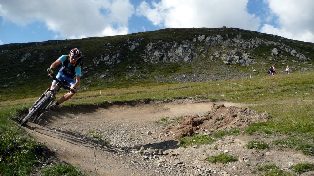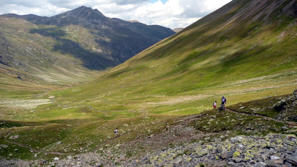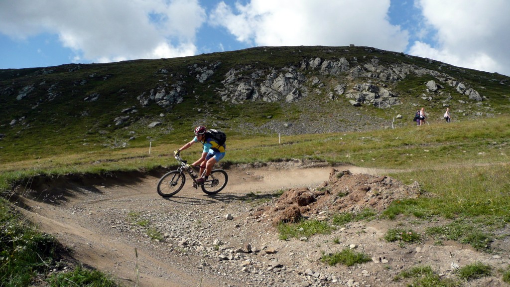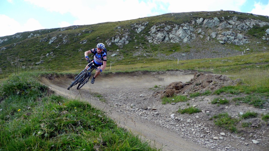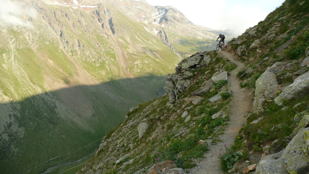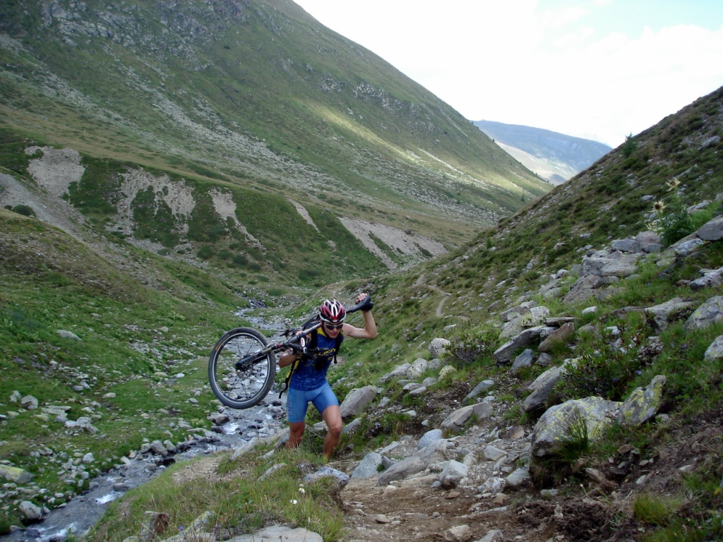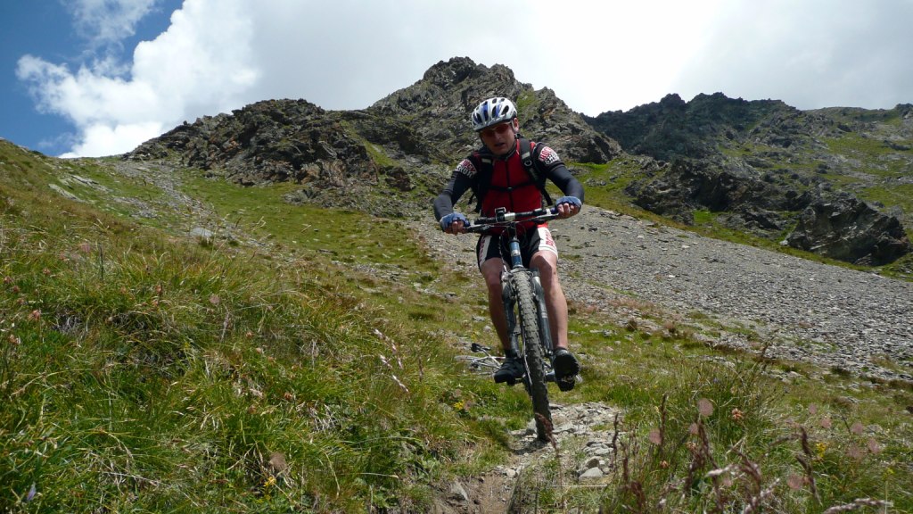 Na záver sa stáva technicky veľmi náročným. Nie pre jeho strmosť, ale pre veľké balvany. V podstate je to tak na hrane, čo sa ešte dá šľapať. Keď už je sedlo na dosah, šípka usmerňuje cyklistov doprava a odkláňa nás tak trošičku vedľa. Toto sedlo vraj používalo veľa cyklistov pri akciách Transalp, no v hornej časti na pôvodnej trase je chodník nezjazdný. Preto urobili Švajčiari túto úžasnú vec, a pre cyklistov vybudovali chodník vedľa. Tento však nie je nijako vyumelkovaný a je vidieť, že ho robili ľudia, ktorí tomu rozumejú. To čo tu vedie celou dolinou, si je ťažko predstaviť človeku, ktorý doteraz jazdil len po rozrytých slovenských lesoch. Vypľuje vás to pri Bikehoteli. Tu má cyklista k dispozícii minidielničku, veľkú pumpu s tlakomerom a možnosť vyvaliť sa na trávu a len tak si polebediť. Zjazd pokračuje veľmi rýchlou jemnou šotolinou a končí na hlavnej ceste vedúcej na Forcola di Livigno. Tu si už zaslúžime obed pred posledným kopcom.