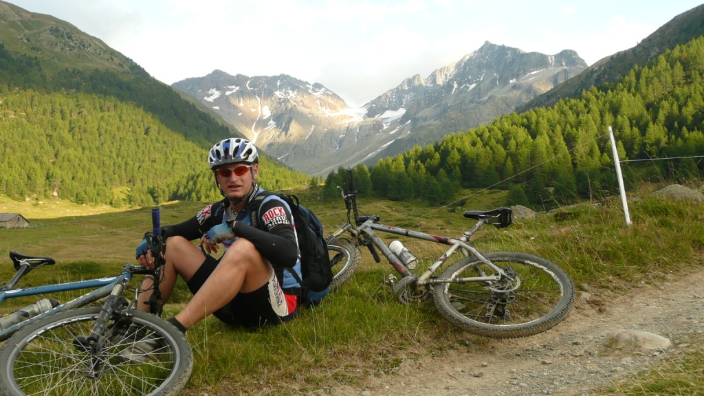 Z áut v doline na ceste sú angličáky. Zo sedla som dal všetko v sedle. Strmosť miestami ohromujúca, povrch horská hlina miesená ostrými kamienkami, miesta obnažené až na skalu a expozícia, ktorá by vás najradšej strhla do doliny nekontrolovaným kotrmelcom. Dolu je cesta prekrytá betónovými galériami, aby autá neohrozovali padajúce kamene. Slovom extrémne ťažký zjazd. Po absolvovaní najťažších pasáží, keď nás čaká už len pohoda pomedzi kravy sa ešte chvíľu necháme opájať eufóriou, pocitom blaha a zaraz sa už ani kolená netrasú. Do Livigna prichádzame už za šera po trati maratónu Pedaledda. Tento deň sa už nedá viac rozplynúť. Ideme si navariť. Nekonečná dobrota:)