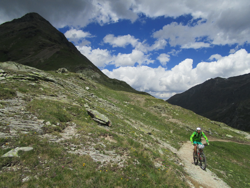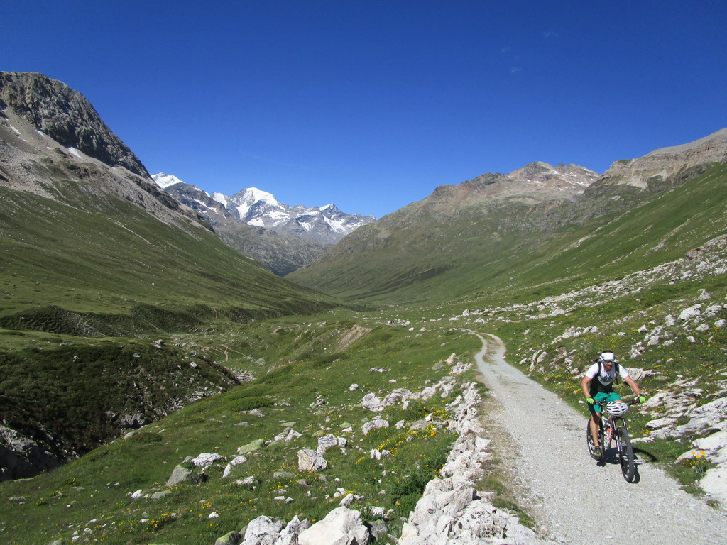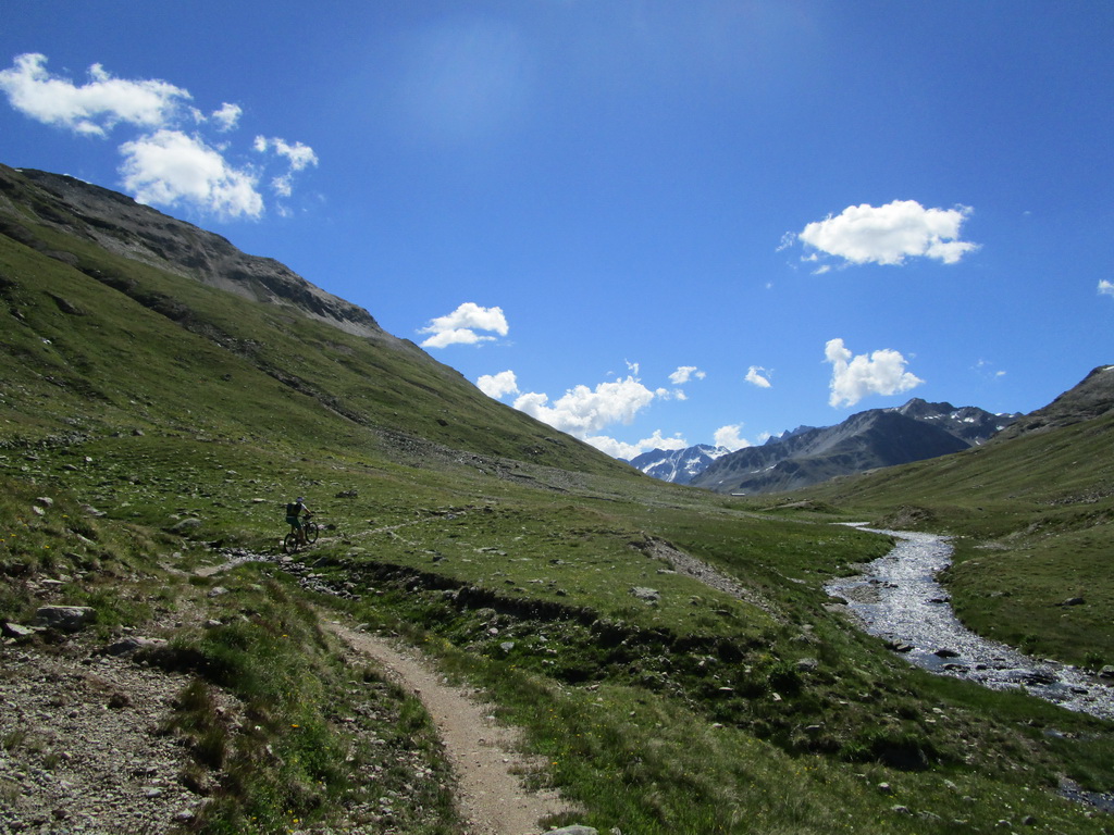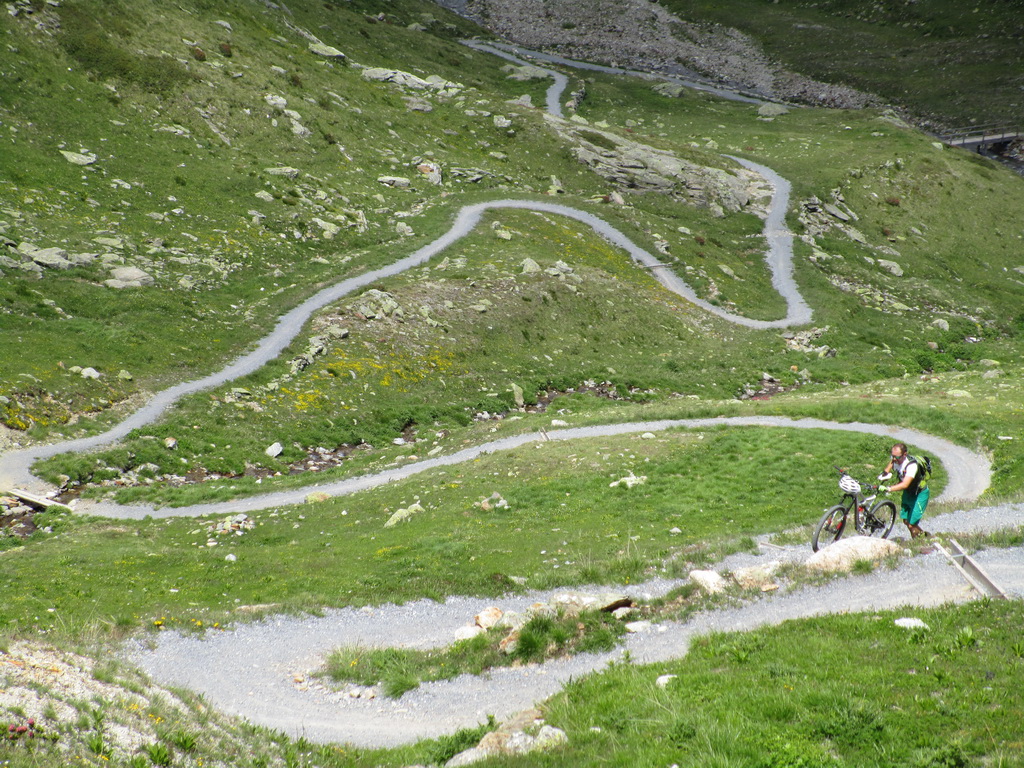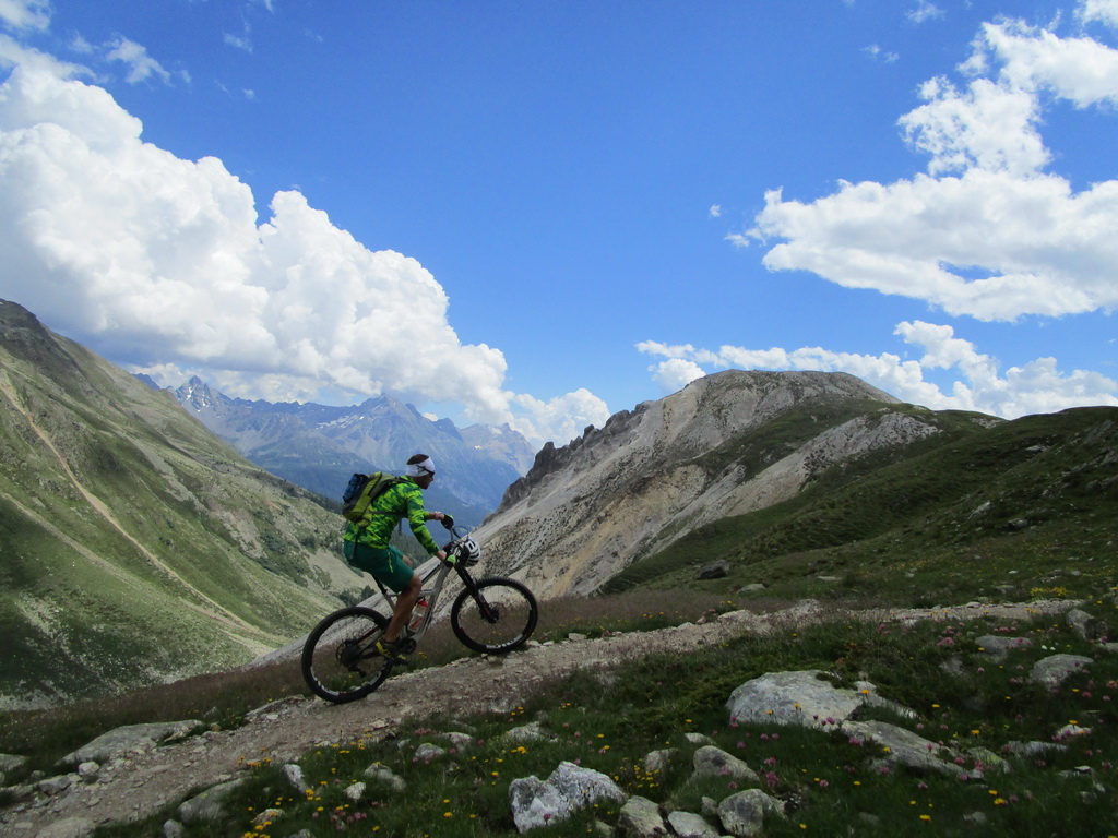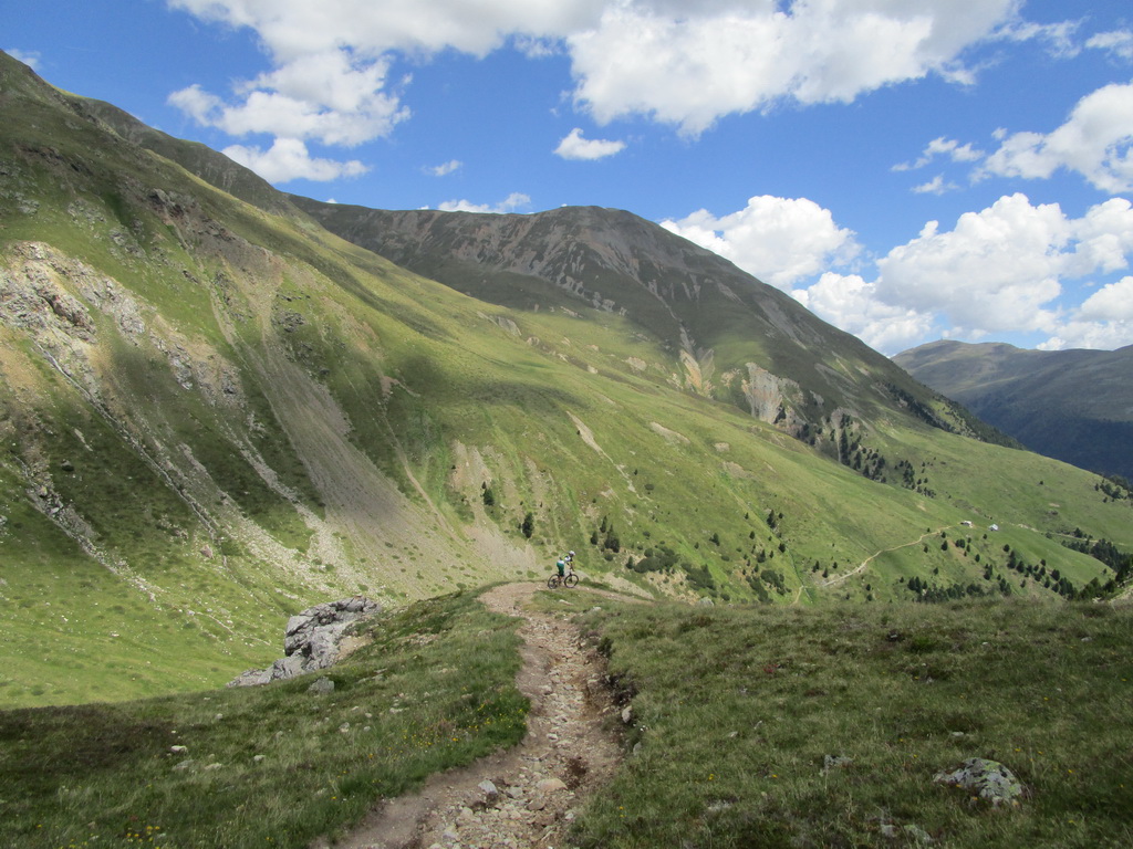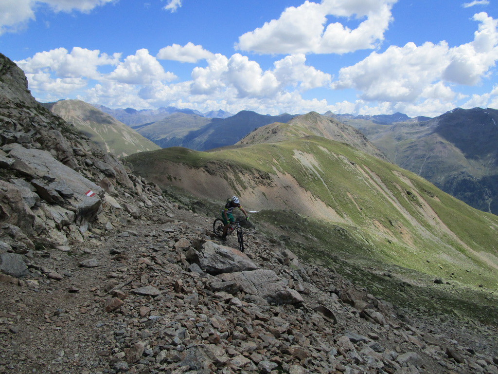 Bajkovou šotolinovou cestou stúpanie na passo Forcola. Odtiaľto traverzom po novom singltraily (fotka) až do sedla Minor kde začína zjazd rovnomennou dolinou ku dolnej stanici lanovky na Lagalb. Tento zjazd je krásny a náročný, na svoje si ale prídu všetci lebo počiatočné kamenisté pasáže v dolnej časti vystriedajú rýchlejšie úseky po hline a tráve. Viac už vo videu.