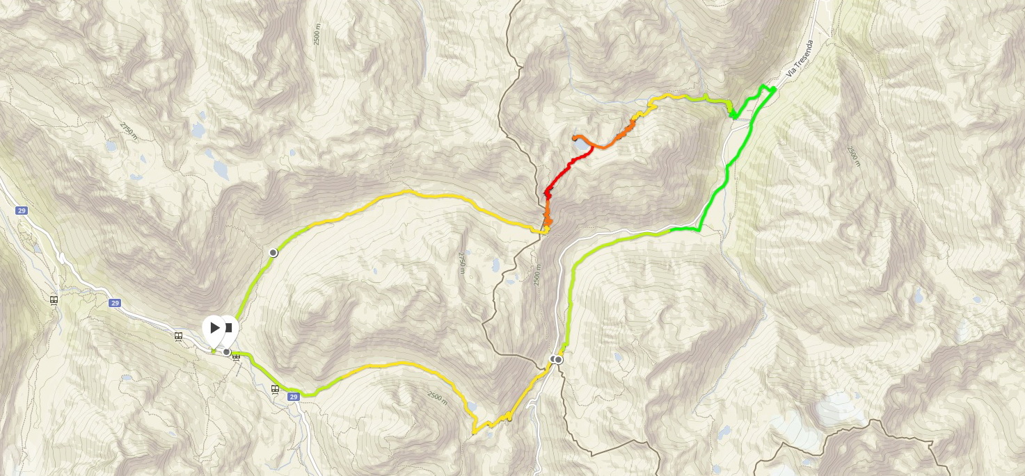Na túru sme vyrážali od parkoviska pri dolnej stanici lanovky na Diavolezzu, samozrejme pri štarte z Livigna sa len napojíte na okruh a zjazdy aj stúpania si dáte v opačnom poradí.