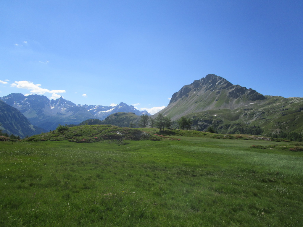 Nasleduje stúpanie jednou z najkrajších dolín aké som v Alpách stretol - Val di Campo. Zachádzku ku Lago Saoseo si tentokrát nerobím. Hodím pohľadom na Lago Viola a striedavo jazdením/tlačením vystúpam do sedla Viola po zánovnom singltraile.