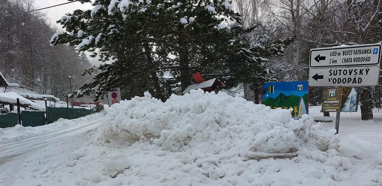 Odsledoval som si čas, aby som sa načas dole vrátil, a aj skôr oproti dohode, nech sa na mňa nečaká. Aj tak sa čakalo, ale čo už, keď som ja mal „kľúče od miešačky“ :-) A išlo sa domov, lenže deň ledva v polovici a telo si ešte pýtalo. Liek na to bol jednoduchý – odbočka do Šútova, auto ponechané napospas snežným pluhom na dolnom konci a daváj do lyží. Pekne podľa šípky ku najnaj tunajšej atrakcii.