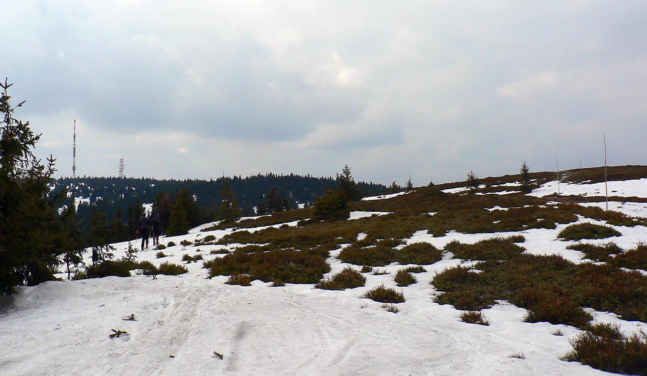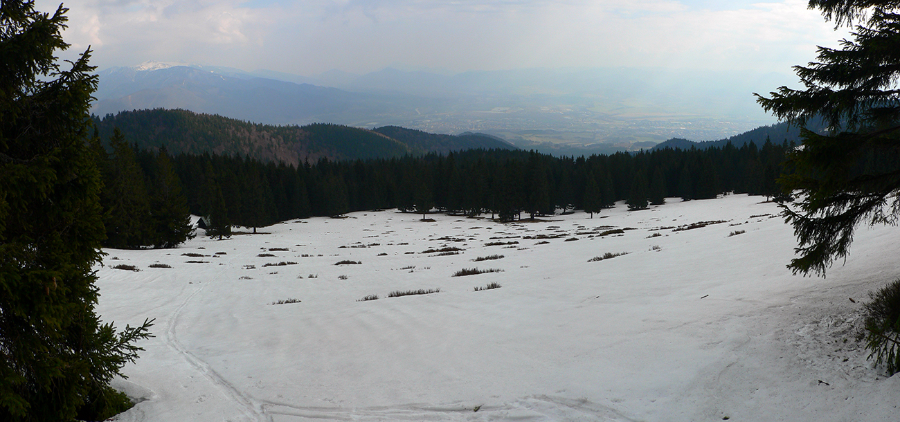 Aby som sa nevracal rovnako, tak zo sedla Prašivé ešte traverz na Dlhú lúku a otázka, či bez vyzúvania prejdem cez napájadlá na Priekopské hole. Jasné, že som neprešiel, inak ale snehuuuuu ako v zime. Po východe na lúku na chvíľku vyliezlo slnko a hneď hic jak na panvici, no fuj... Ale prekrížil som stopu tej dvojky, ktorá od studničky išla opačne ako ja, tak daváj po nej komfortne hore na hrebeň priamo na Zázrivú, riedkym lesom.