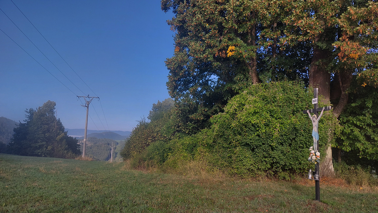 Kvôli zokruhovaniu netreba zísť až do Hiadľa, ale nad prvými domami zatočiť doľava a starou lesnou cestou vystúpať ku krížu v lúčnatom sedielku nad cintorínom. Od kríža už vedie nazad na juh zreteľná cesta pomedzi lúky. Ku koncu sa na klesajúcej lúke síce stratí, ale tam treba len pár metrov sledovať elektrické vedenie smerom doprava, a to nás dovedie na cestu, ktorá už v tom Lučatíne ozaj končí – priamo pod múrom starej priehrady, kde sme okruh začínali. Šťastnú cestu!