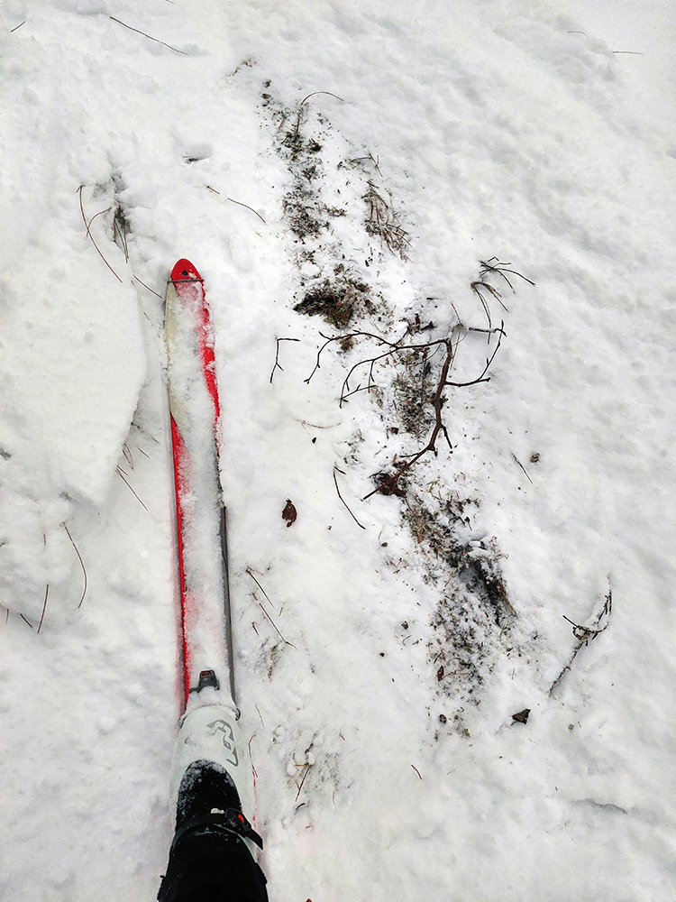 Od Poľky dole na zvážnicu zavadzajú okrem krtincov aj špicaté kríky a na mnohých miestach už sa spravila hnusná krusta. Popri turistickej žltej značke najhoršie rozlyžované, treba odbočiť vyššie a schádzať šikmejšie.
