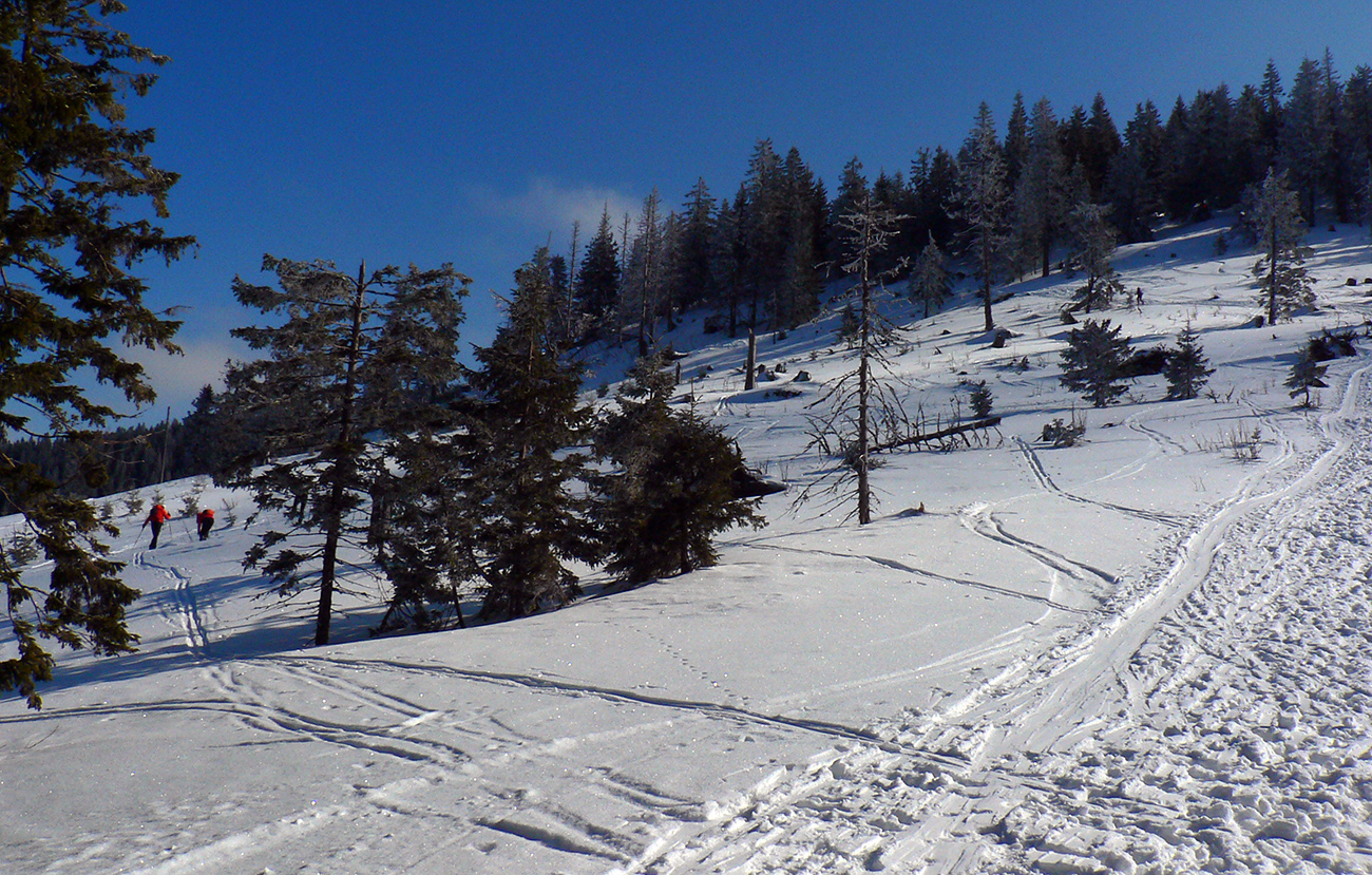 Samozrejme aby bola symetria zachovaná, druhý raz sme sa zrútili zase na sever spod Veľkej hole, ale tentokrát už riedkym lesom, znaleckými chodníčkami – len som čumel, aké zázráčná sa ukrývajú za zdanlivo nepriepustnou smrekovou hradbou pod výstupovým chodníkom. Miestny znalec Z proste hviezdil!