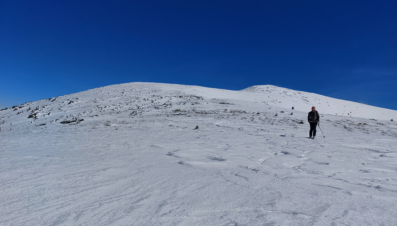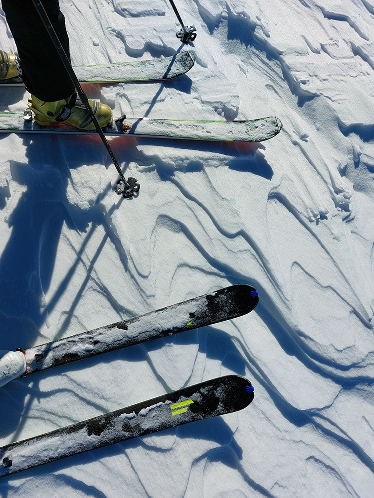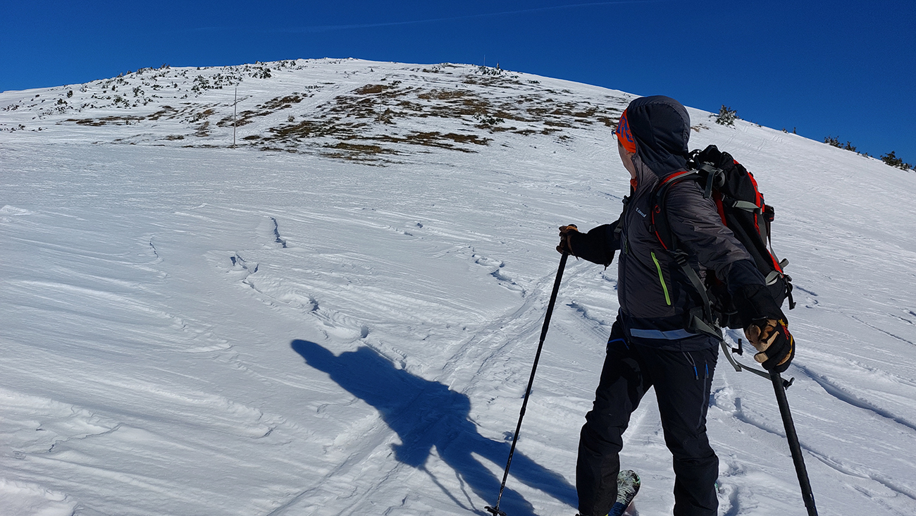 Tie dva kiláky po hrebeni nakoniec neboli až taká tragédia – síce ľadové vlny, šindle, hobliny, hrče a iné pásožravé patvary, ale nejako sme väčšinou pomedzi ne preštrikovali po zvyškoch aj po čerstvých náfukoch normálneho snehu. Do juhov sme ani nenakukli, tam to isto bolo mokré a inak hnusné. Niektoré nešťastnejšie časti hrebeňa už boli samozrejme do hneda, až fuj.