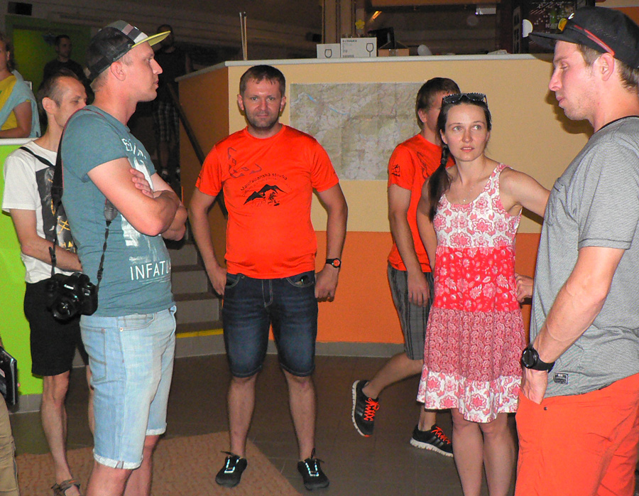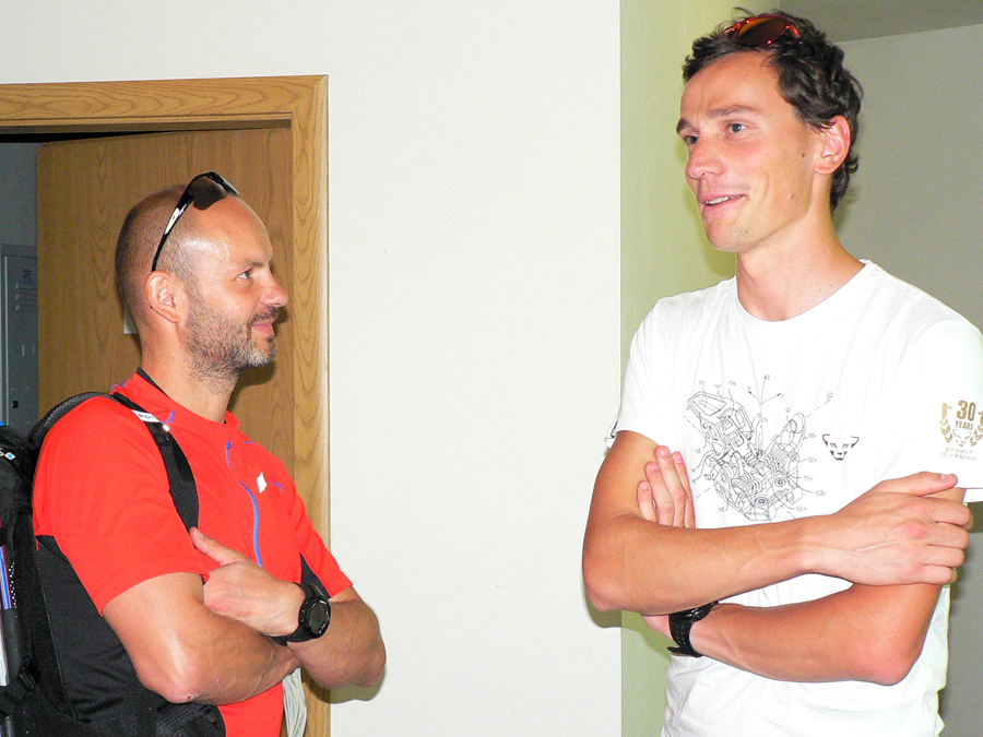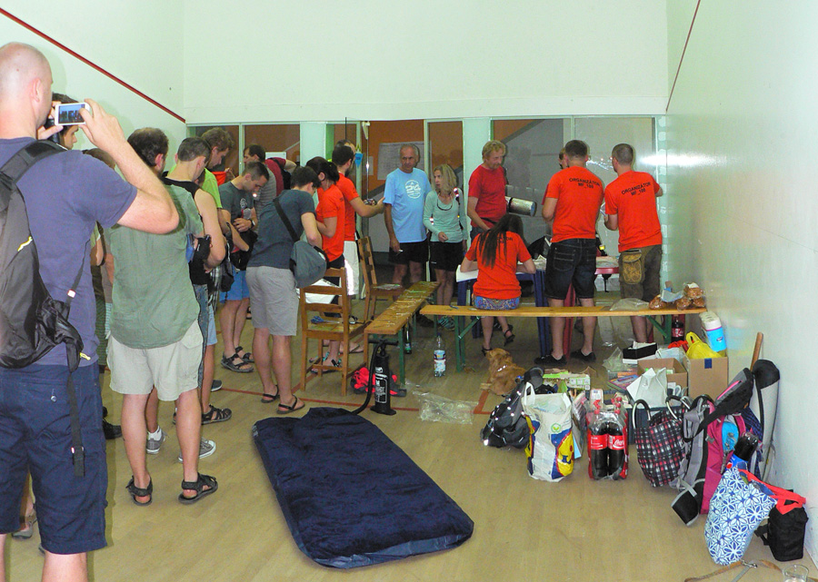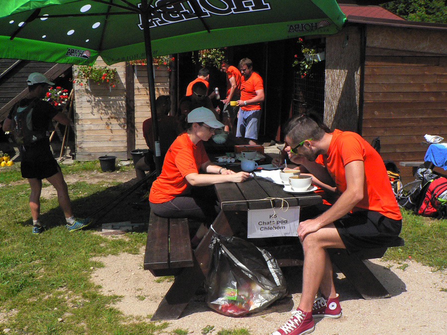 Novinky? Samozrejme už v predstihu Martin Drozd a spol. lákali na fejsbúku podrobným prehľadom príprav. Dobrá bola napríklad fotka škatúľ s ovocím pre občerstvovačky, kde nechýbalo ani vrece cibule – nepostrádateľného diaľkoplazeckého ovocia :-) Ale už ani jonťák nechýbal a v tom teple bol ozaj pre viacerých záchranou. Jonťák, masť a cibuľa sú dôkazom totálne odlišných nárokov účastníkov, ktovie čo by vzniklo ich kombináciou :-))) A akým „apgrejdom“ prešla zvuková aparatúra, noooo! :-))) A itinerár taký podrobný, až som nevedel kam sa skôr pozerať, a párky na raňajky a videoprezentácia trasy pri prezentácii a najmä tie slané škvarky v cieli :-) A aby som nezabudol na tie vymakané tričká!
