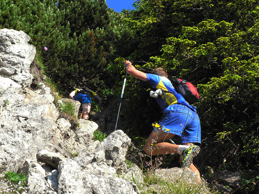 Začiatok ako vlani, po asfaltke smer Vrátna. Ale len po prvý rázcestník, odtiaľ doľava a pekne „kolmo hore“ na Boboty. Pekné rozohriatie, som si naivne myslel, že o šiestej ráno ešte bude chládok – no mal si ho vidieť, po pár metroch zo mňa kvapkalo, že som chcel foťák do igelitky schovať. Z Bobôt dole do Štefanovej a nasledoval okruh na nahnanie pekných scenérií pre foťáky a výškových aj dĺžkových metrov pre „dobrý pocit“: výstup do sedla Medziholie, stade cez Veľký Rozsutec a brutálny zostup do Príslopu nad Bielou, odtiaľ pohodlným traverzom nazad na Medziholie. Potom už „klasika“ až do Strečna po hrebeni ( skoro furt - až na tie dva milé, teplučké, južné traverzy). Aj tu som naivne dúfal, že hore bude fúkať. No bol to len veľmi biedny vánok. A na juh otočený traverz zo sedla Priehyb pod Suchý, s nasledujúcim výplazom na Suchý, to bolo peklo! A ešte väčšie medzi Starhradom a Nezbudskou Lúčkou, človek ako keby bežal proti zapnutému fénu.