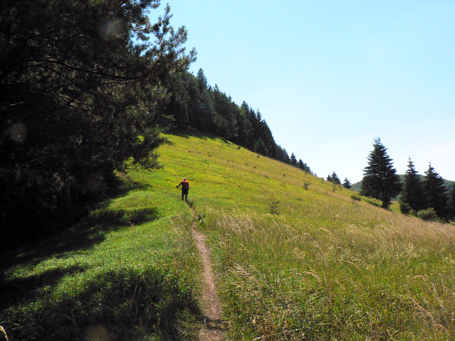 Ďalšia zmena hneď za Strečnom: do sedla Javorina žiadne pohodlné stúpanie lesným tieňom zvážnice, ale strmizným chodníkom po žltej popod Kojšovú. Keď som sa po ôsmich hodinách, dokonale upečený a uvarený vo vlastnej šťave, blížil k Strečnu a uvidel som ten hrebienok, olizovaný rozžeraveným slnkom, kade vraj mám ísť ďalej, nebolo mi všetko jedno: boli dve hodiny popoludní a teplo gradovalo niekde nad 30 stupňami...