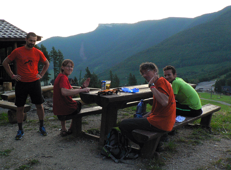 Tam sa tesne po polnoci, čiže po 18 hodinách a dákych minútach, objavil Adrián Kašniar, až po Martinské Hole druhý s takmer hodinovým odstupom. Lebo vedúci Marek Causidis to kvôli kŕčom (a priorite pripraviť sa na ďalšie preteky) niekde za Hoľami zabalil a vrátil sa nazad k rotunde, stretli sme ho v kosodrevine na Veľkej Lúke. Adriánovi gratulácia a okrem iného aj veľká vďaka, že nám ostatným porozháňal medvede – vraj videl zo tri.