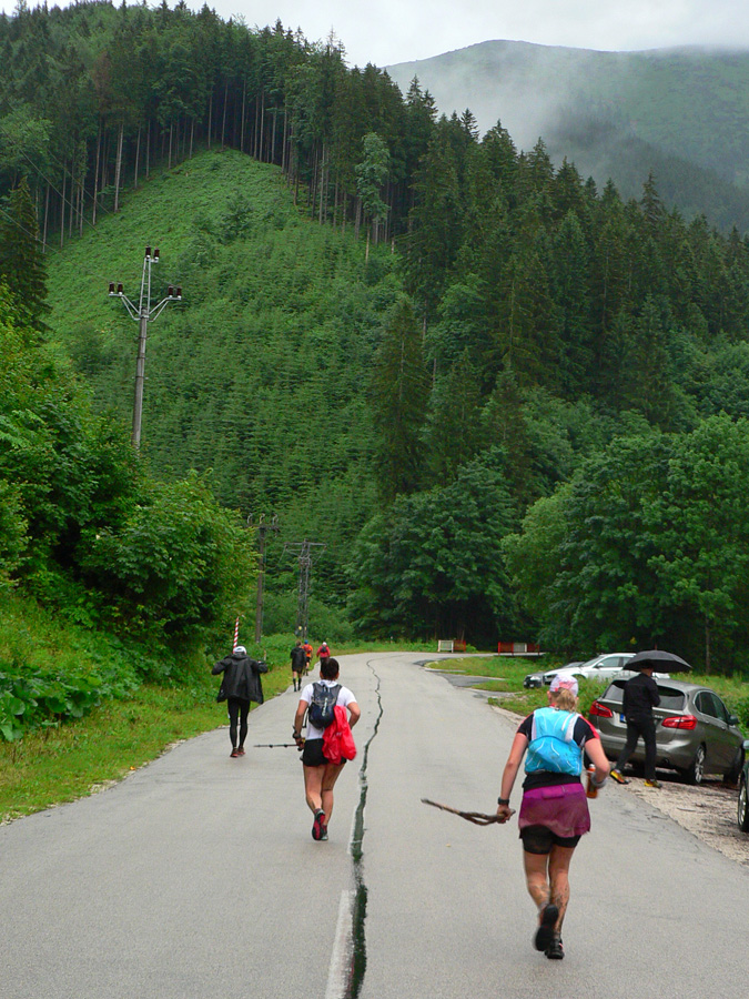 Takže nazad na štart: tentokrát všetci vyrazili do bahenných kúpeľov priamo po ceste.Vlaňajšia šmýkačka - zadkovačka po mokrej tráve spod sochy Jánošíka bola zrušená. Inak mala mať trať rovnaké parametre ako vlani. Ale aj tu človek mienil a počasie menilo. Už na prvej živej kontrole vo Vrátnej sa všetci dozvedeli, že Rozsutec sa ruší a bude sa len traverzovať. Kvôli bezpečnosti – vďaka lejaku sa tam nebezpečne šmýka a zhora nebezpečne hrmí... Hlásili horskáči z Medziholia. Ale potom sa to presne podľa predpovedí upokojilo a až na pár blatnatých zbehov v prvej polovici (Stoh, že?) bolo až do konca počasie bežecky takmer ideálne. Konečne!!! A prejavilo sa to aj na výsledných časoch.