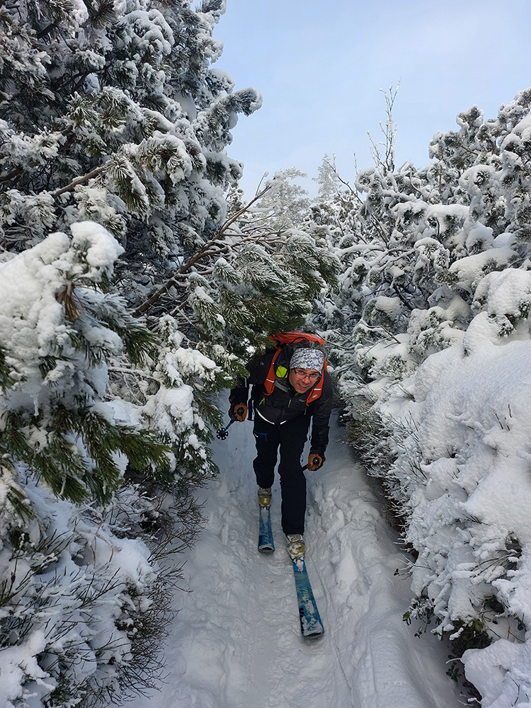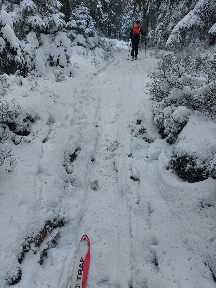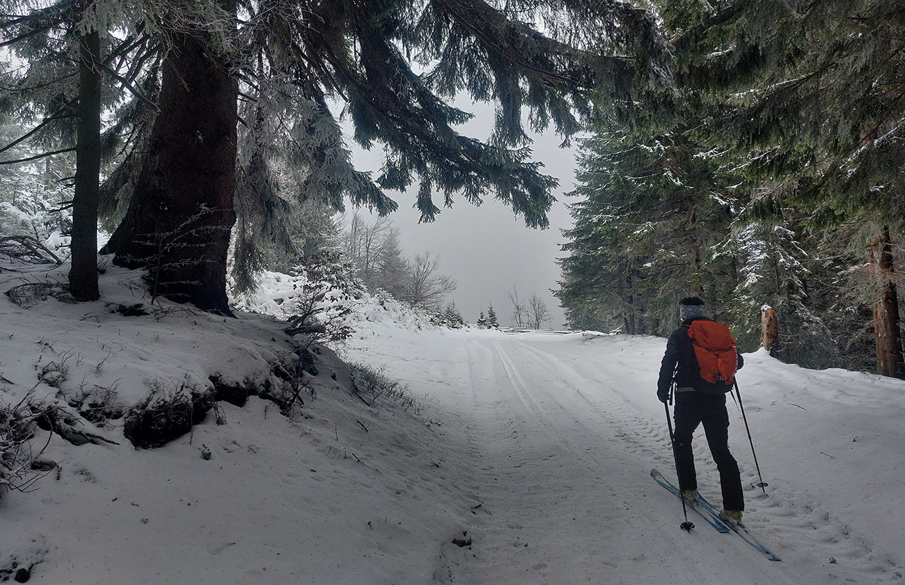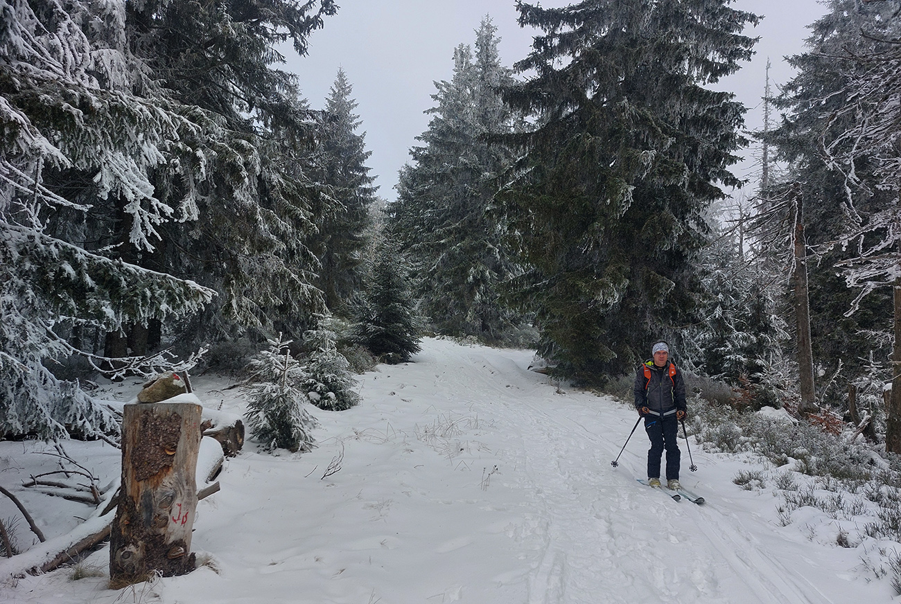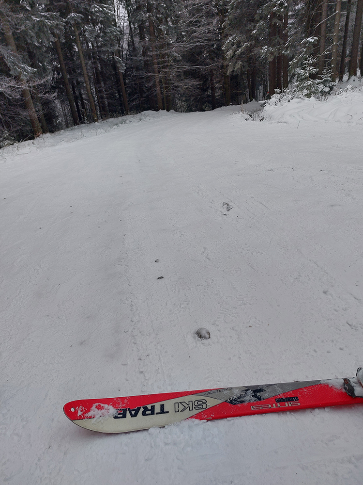 V kosodrevinovom tuneli pred vysialačom sa stále netreba moc plaziť, na to je primálo snehu, ale obísť sa to dá komfortne okolo vleku Céčko, doľava od smerovníka Pod Krížavou. Mali sme nanešťastie a presne napriek predpovedi (jasno až polojasno) klasické martinskohoľské mlieko a fičák z východu, tak na Veľkú lúku sme radšej ani nešli, ale hmla sa dvihla len kúsok pod chatou Javorina a potom odjazd po zjazdovke znepríjemňovali len syčiace delá. Stredisko otvára ktovie kedy, treba využiť neposypanú cestu. Len ešte na spojke zo zjazdovky na cestu si treba dať pozor na pirane. Odjazd na Studničku po asfaltke potom už superkomfortný. Ako vždy, viac povedia fotky.