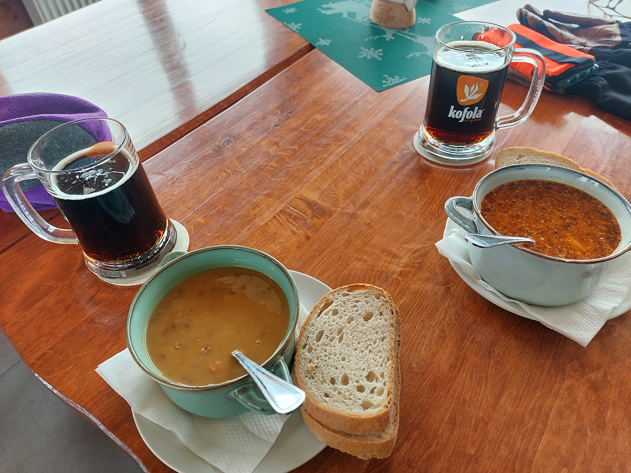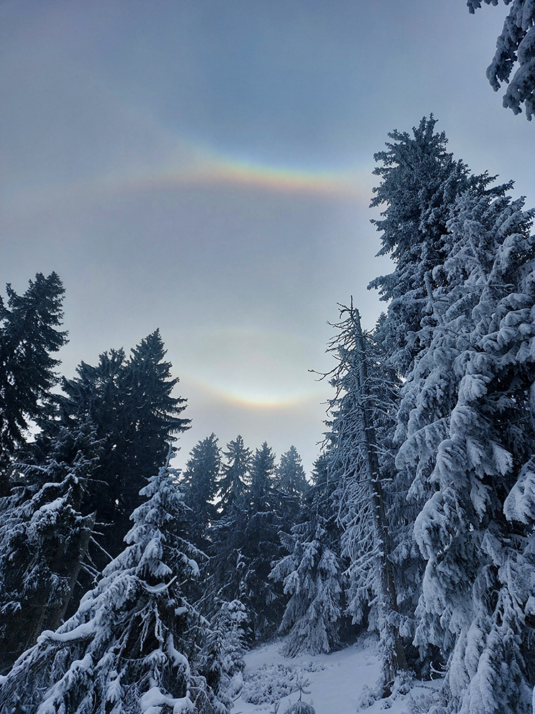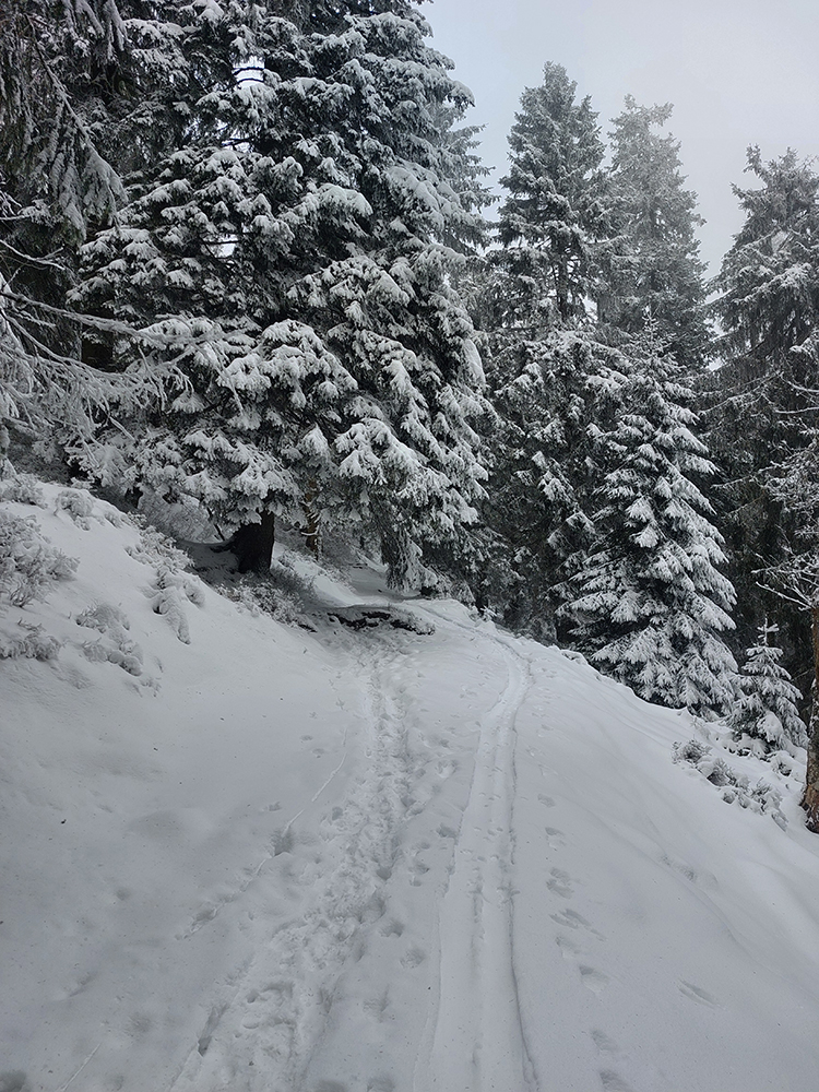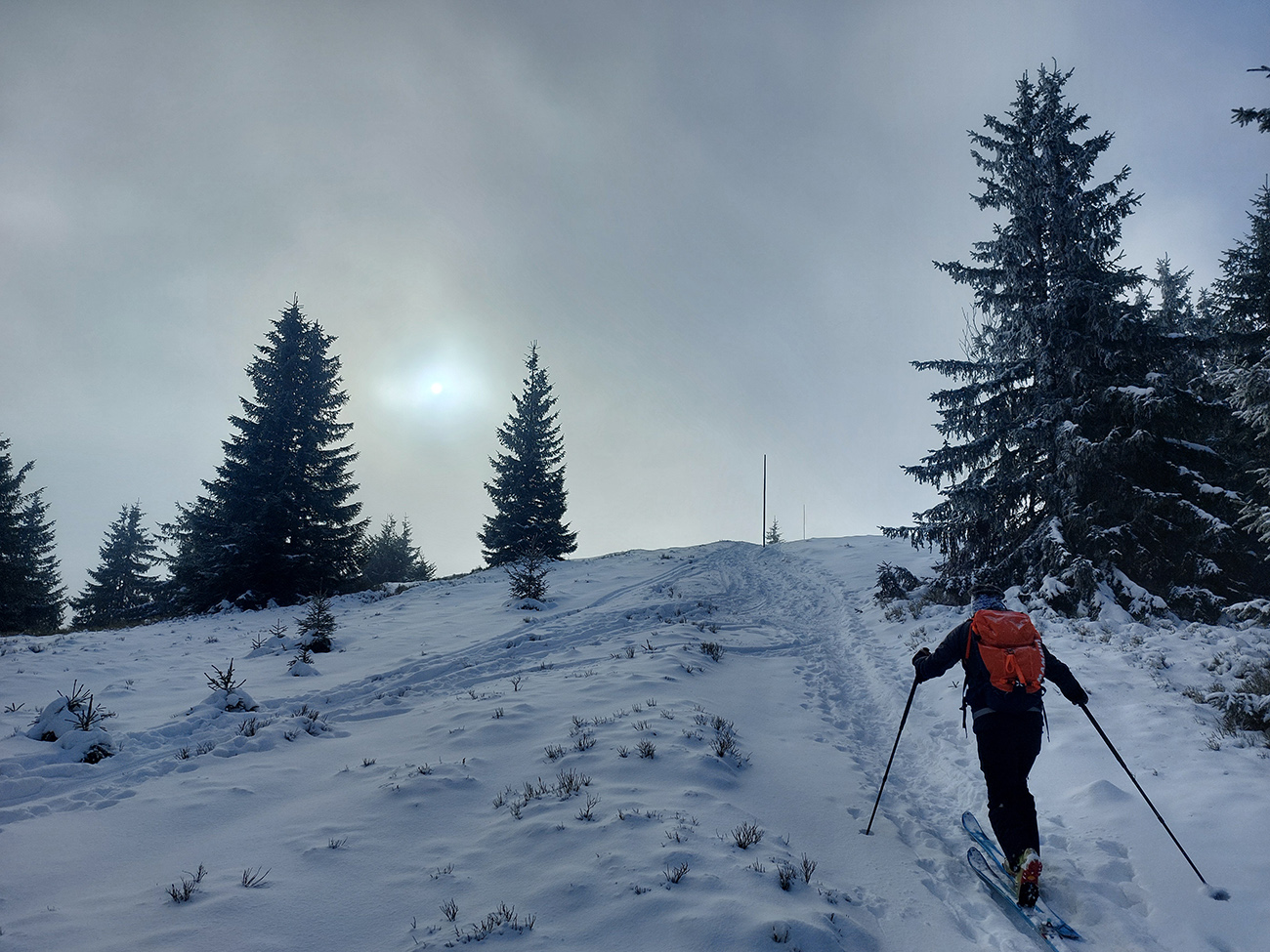Nie je zatiaľ veľa lokalít, kde sa dá mimo asfaltky alebo zjazdovky. Takže tu pár fotiek ani nie zo samotného strediska, ale zo zvážnic a turistických chodníkov pod hrebeňom medzi Krížavou a Minčolom. V podstate rozšírenie minulotýždňového aktuáliku, len aj z trochu iného kúta. Síce furt málo snehu (len pocukrovalo ten starší), základ skoro žiadny, ale na miestnych pasienkoch to stačí na výšľap. S lyžovaním je to horšie, niekde až prudko nemožné, ale na to je tu zjazdovka a cesta. Takže návod ako na to: zaparkujeme na zákrute pri Partizánskej studničke, po zvážnici pohodlne na spodný okraj Dlhej lúky, kde sa napojíme na žltú značku. Po nej do sedla Prašivé, vľavo vbok a „cesta rozprávkovým lesom“ po červenej hrebeňovke až k vysielaču na Krížave. Popri plote areálu je to trošku širšie smerom doľava, potom už máme na výber. Po zjazdovke dole od vlekárskej rotundy alebo po ceste okolo chaty Javorina, kde je ale nebezpečie vcucnutia dnu. Nás vcuclo, na polievku a kofču :-) Potom už ďalej dole k autu po ceste, po najdlhšej zjazdovke a znovu po ceste až nazad k autu pri Studničke. Komfortne a bez následkov na sklzniciach.