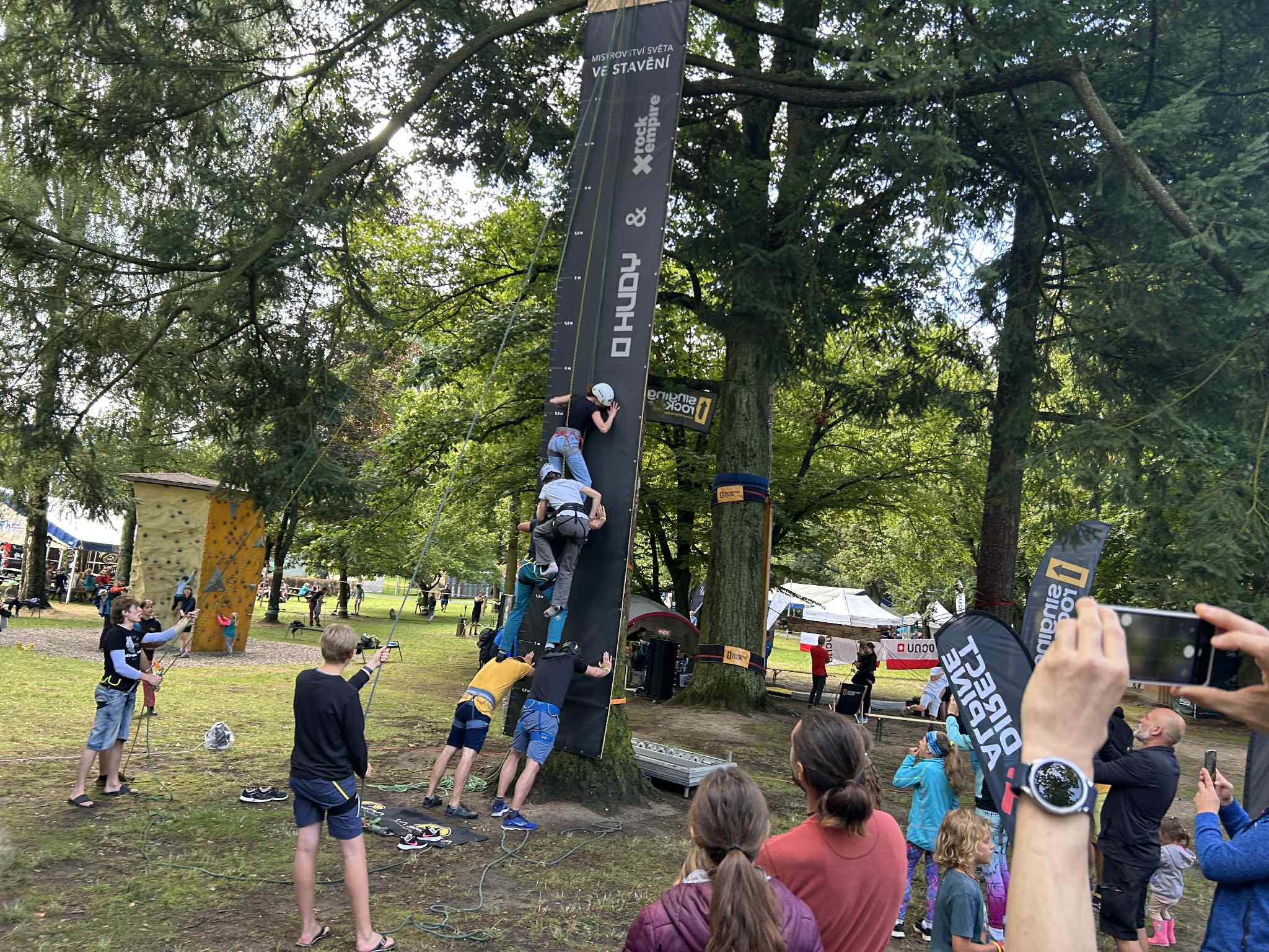 Hlavné dianie sa sústredilo na štyri lokality: v mestskom parku, v priestoroch školy a kina a na miestnom statku. Práve statok mal pre nás najkrajšiu atmosféru – oddychová zóna s pahrebou, vodnými fajkami, malou bouldrovou stenou a drytoolingovou konštrukciou, ktorú už vo štvrtok skúšali prví lezci.