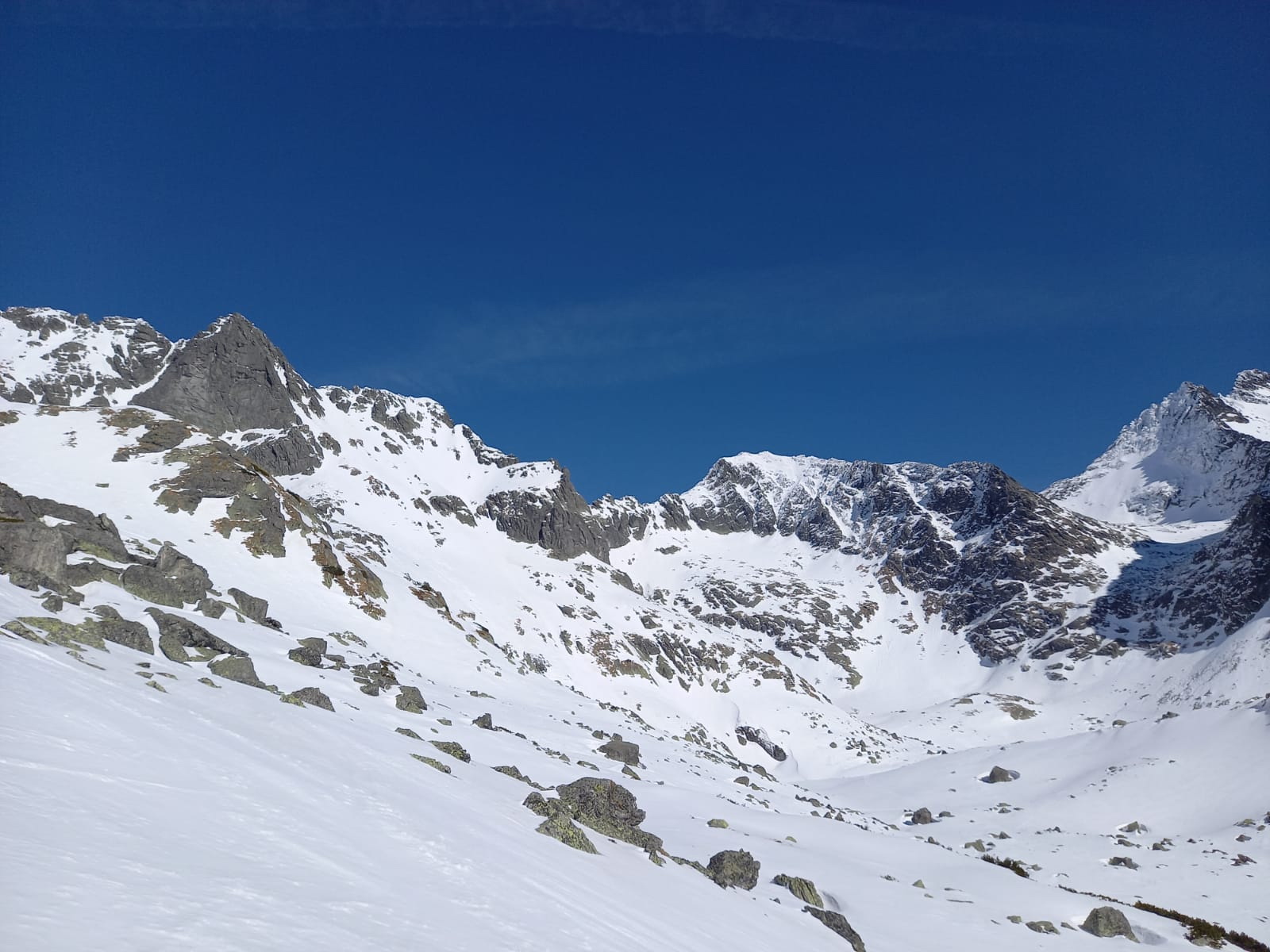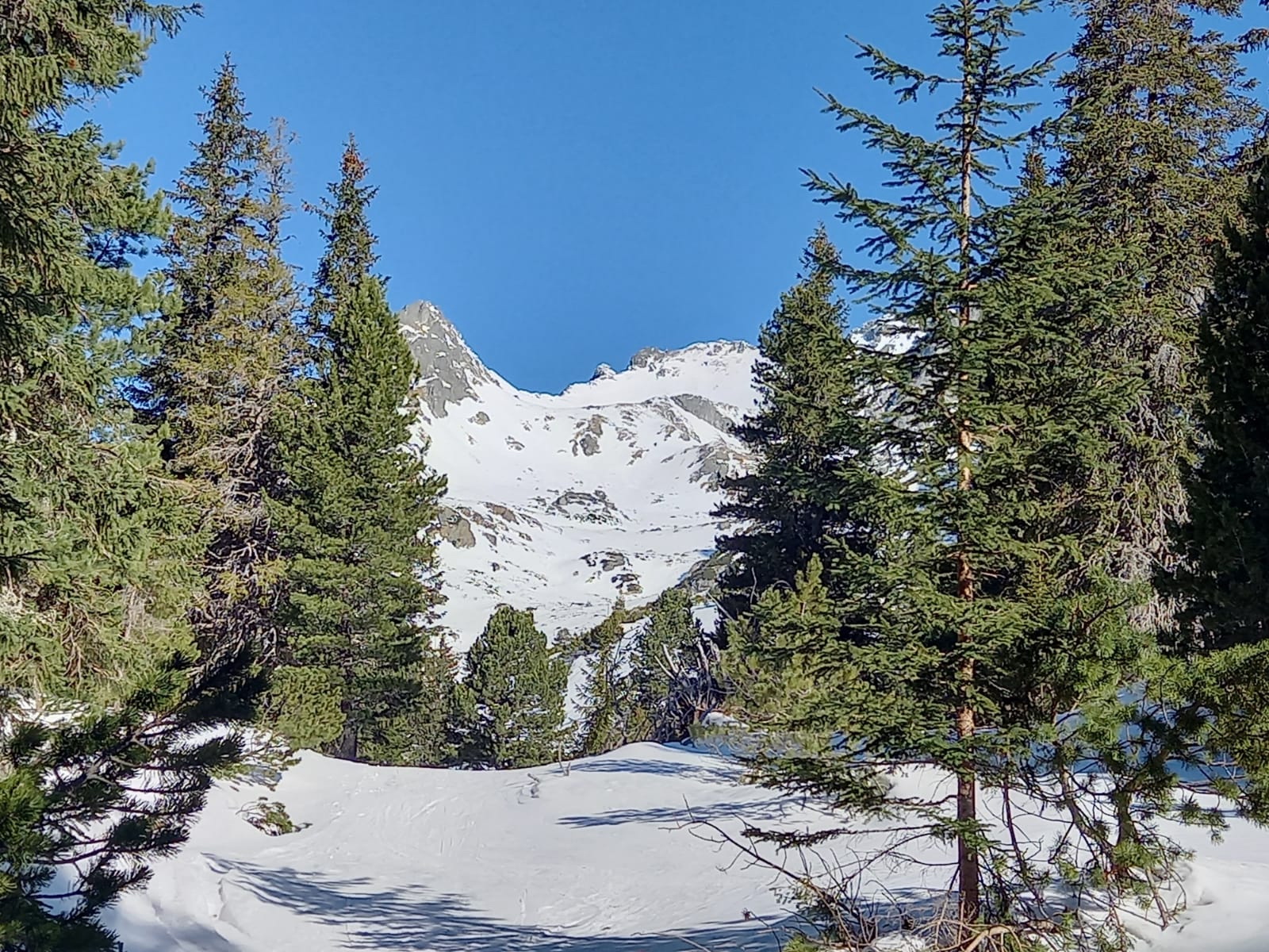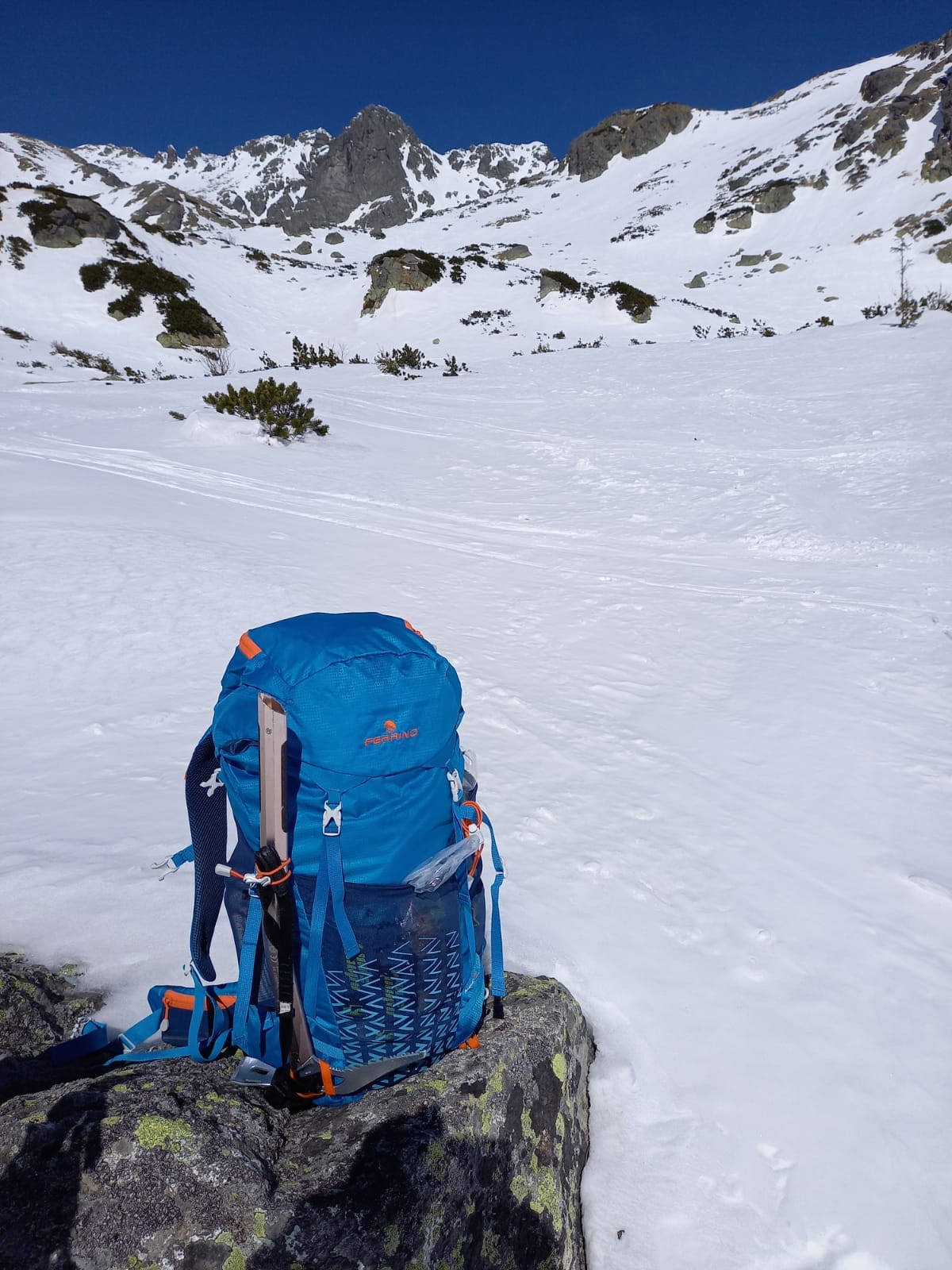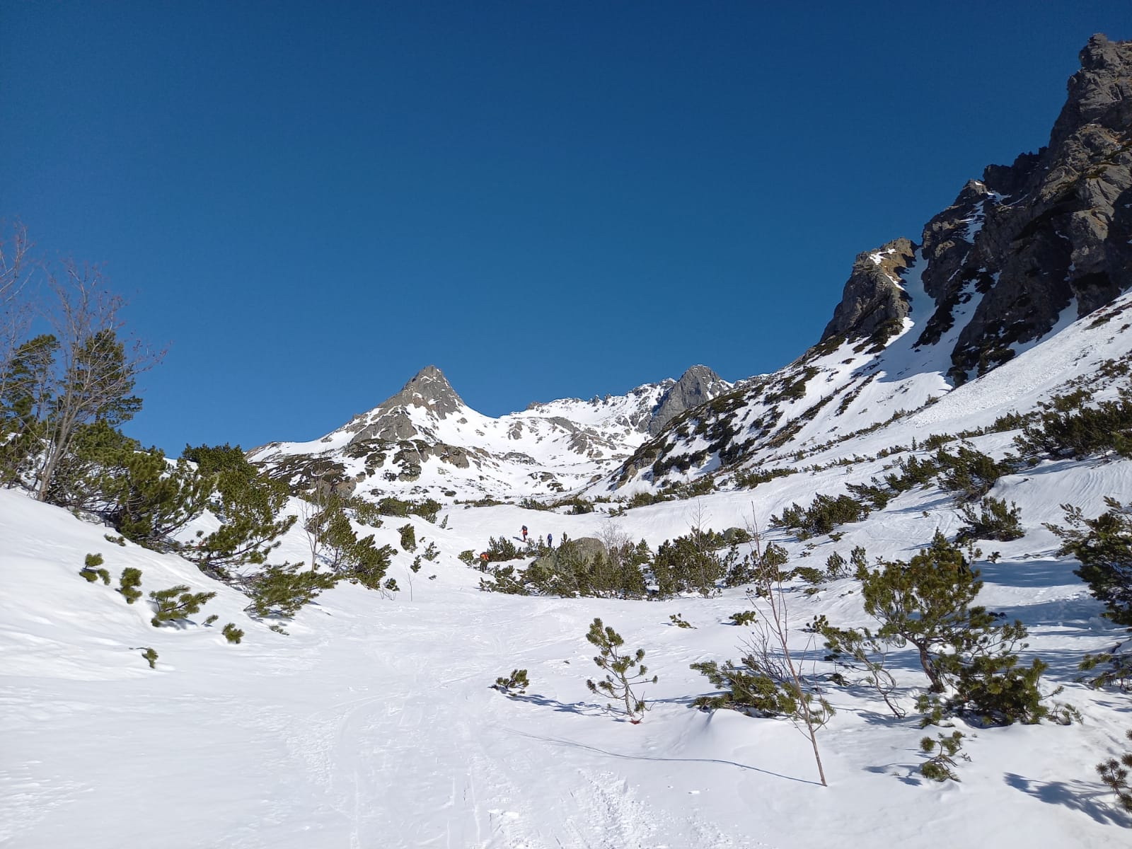 V lese špina a ľad. Tvrdo aj nad kosovkou. S použitím mačiek po miestami tvrdom až zľadovateľom snehu hore až do Rohatej štrbiny. Pri nástupe na Popradské pleso použitý chodník lesom od vodárne po ľavom brehu potoka, neskôr po zelenej značke na cestu. Návrat z Popradského plesa zľadovateľou cestou, viackrát potreba vypnúť lyže.