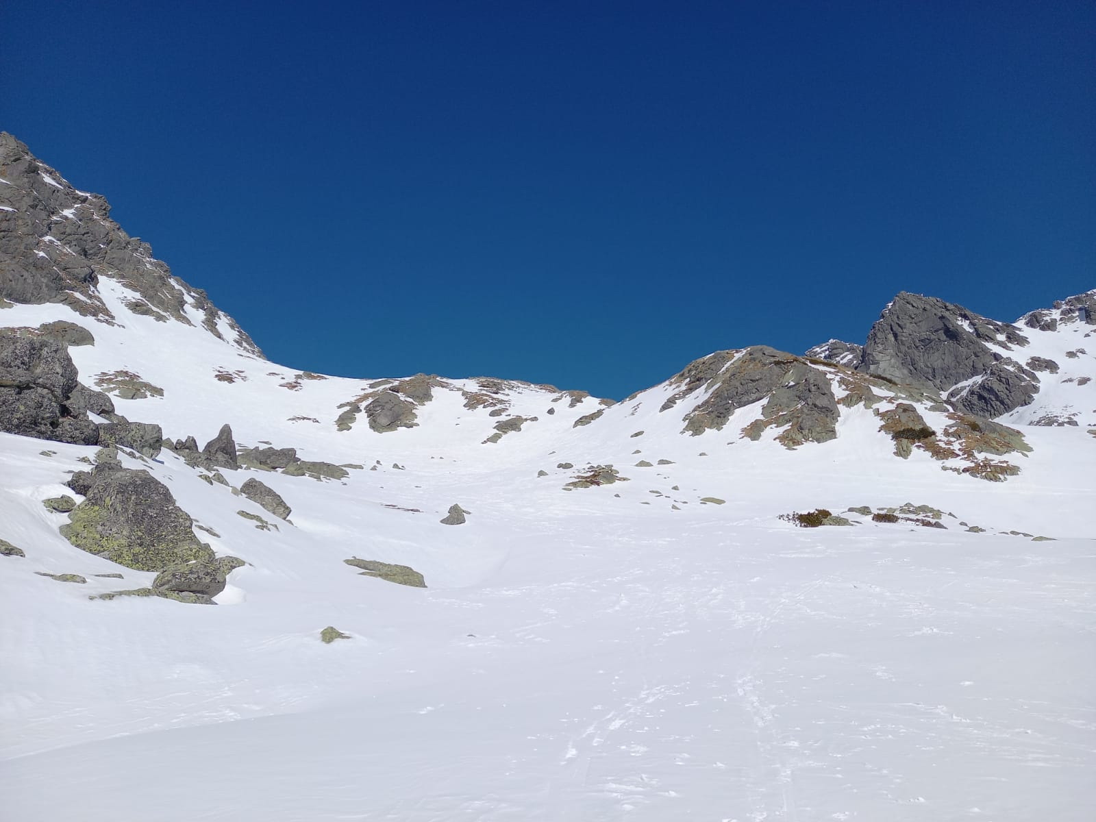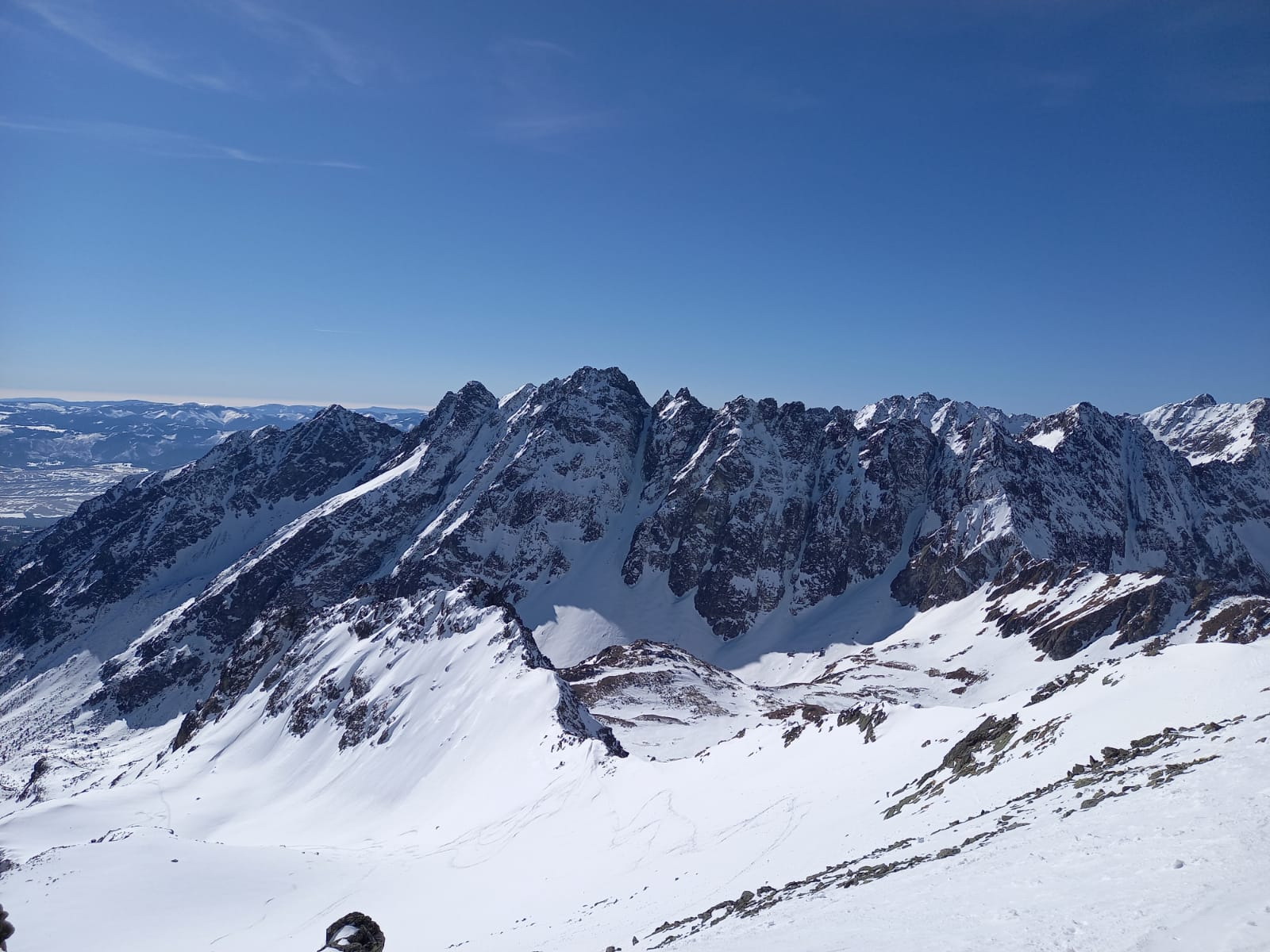 Mierny vietor príjemne ochladzoval, úseky bez neho už začínalo byť nepríjemne horúco. Sneh na slnku postupne zmäkol, miestami ale ostával tvrdý a ľadový, je ho málo ako v podstate po celú zimu.