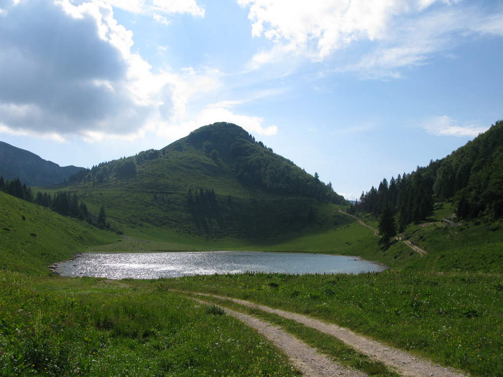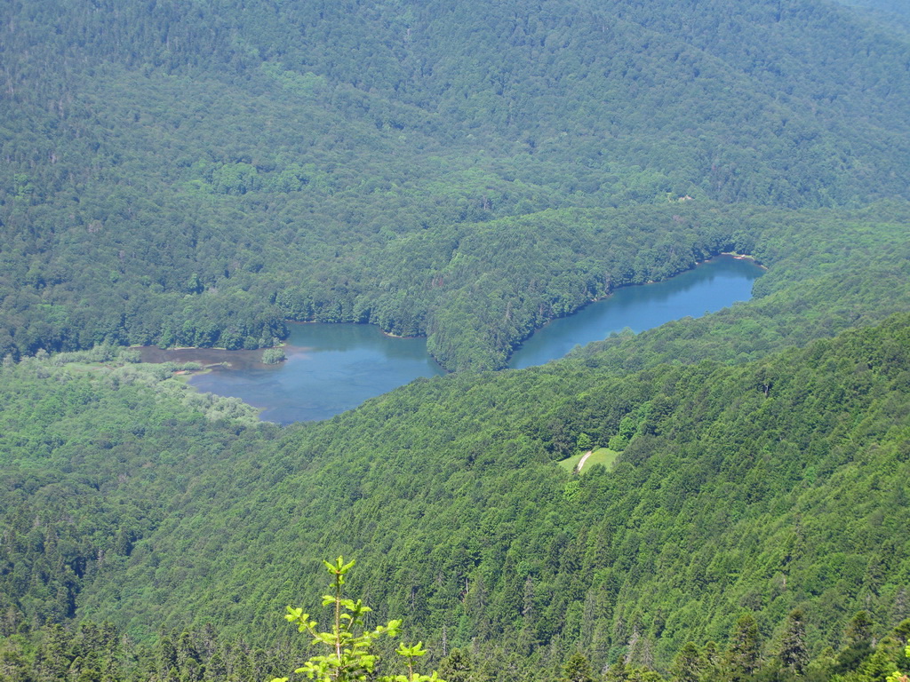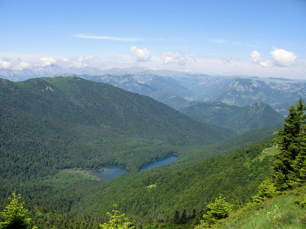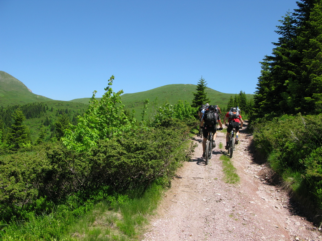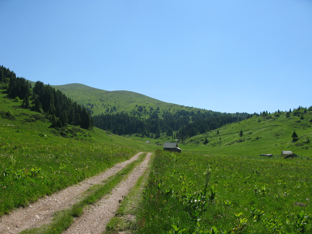 Hneď od chatiek, v ktorých sme boli ubytovaní vedie bukovým pralesom kvalitná lesná cesta, ktorou sme začali naberať výšku. Po krátkej zastávke na rozhľadni, postavenej za pomoci zahraničných organizácií sme sa serpentínami v lese dostali na prvé lúky. Nestretli sme nikoho a na lúkach sa dokonca nepásli žiadne "bizóny"! Tak sme namiesto tradičného alpského zápachu vychutnali vôňu kvetín.