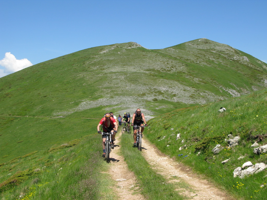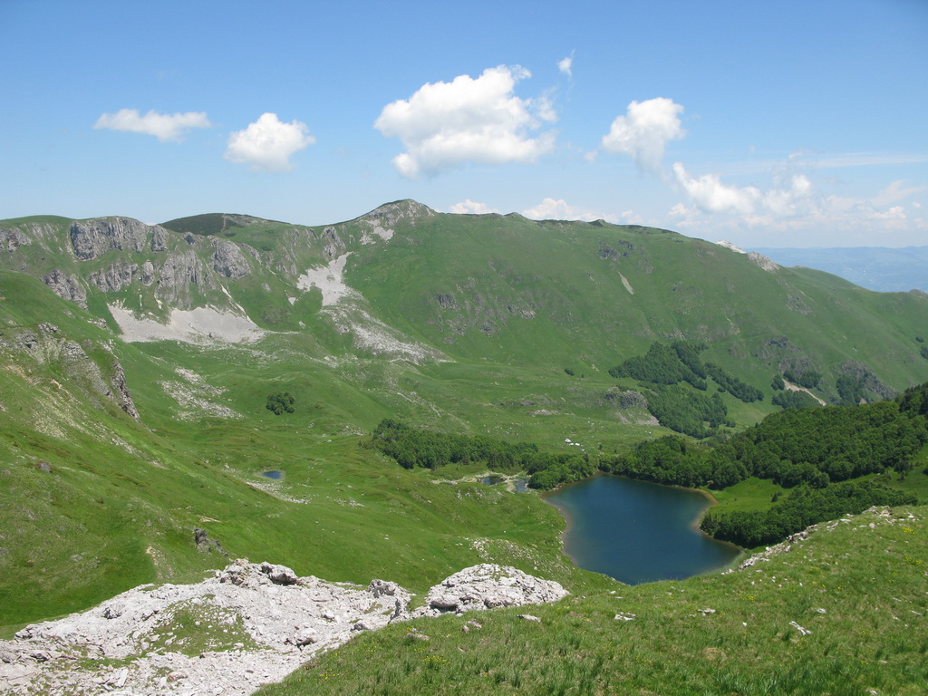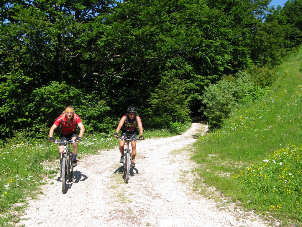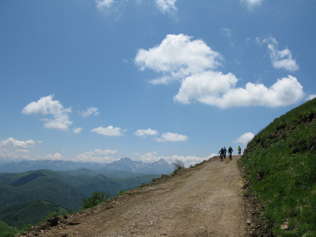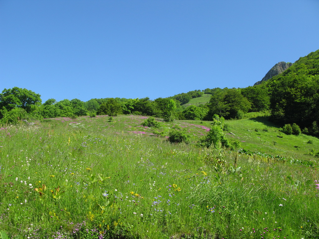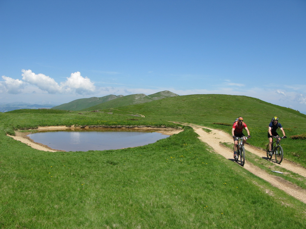 Hneď od chatiek, v ktorých sme boli ubytovaní vedie bukovým pralesom kvalitná lesná cesta, ktorou sme začali naberať výšku. Po krátkej zastávke na rozhľadni, postavenej za pomoci zahraničných organizácií sme sa serpentínami v lese dostali na prvé lúky. Nestretli sme nikoho a na lúkach sa dokonca nepásli žiadne "bizóny"! Tak sme namiesto tradičného alpského zápachu vychutnali vôňu kvetín.