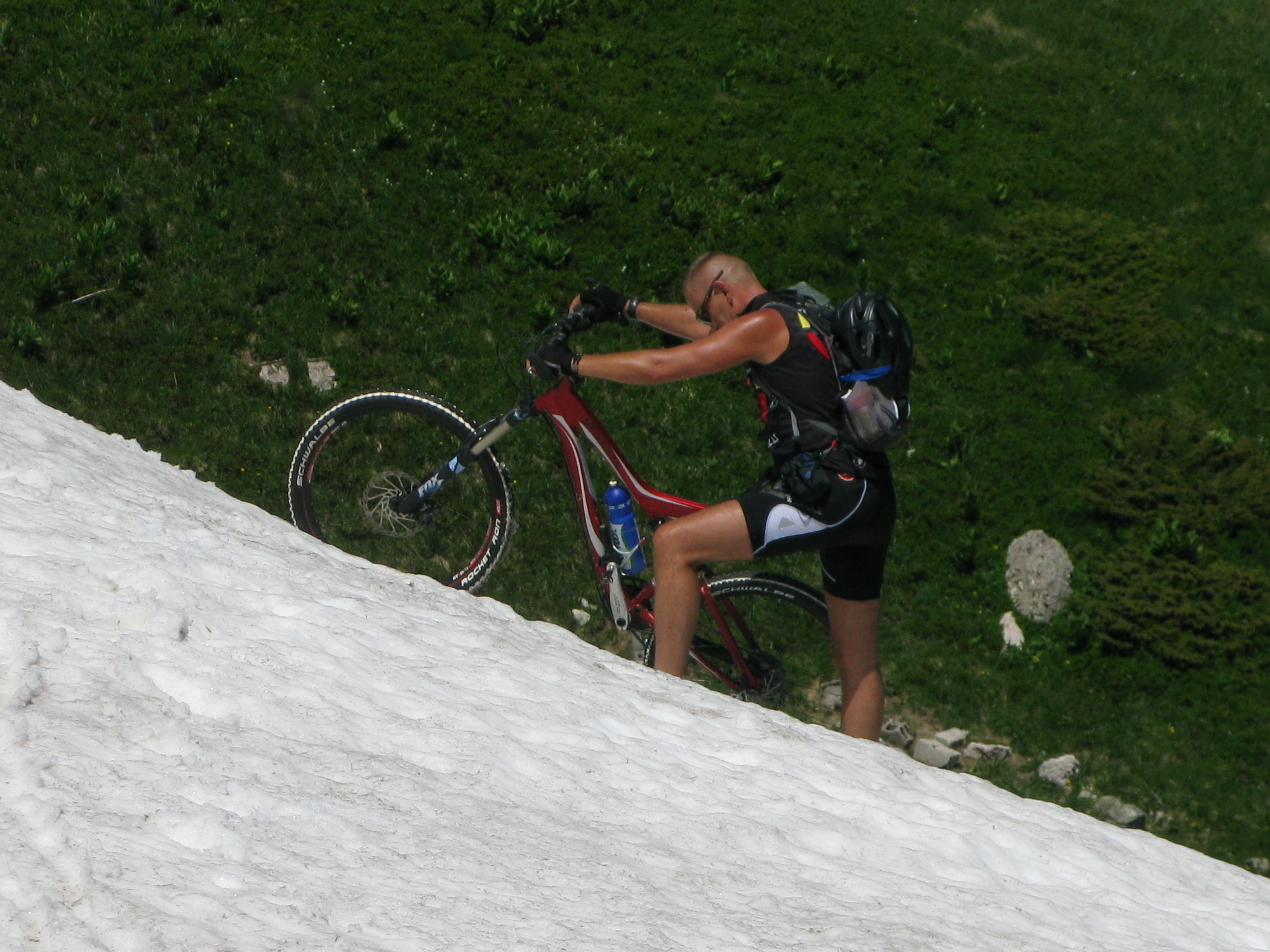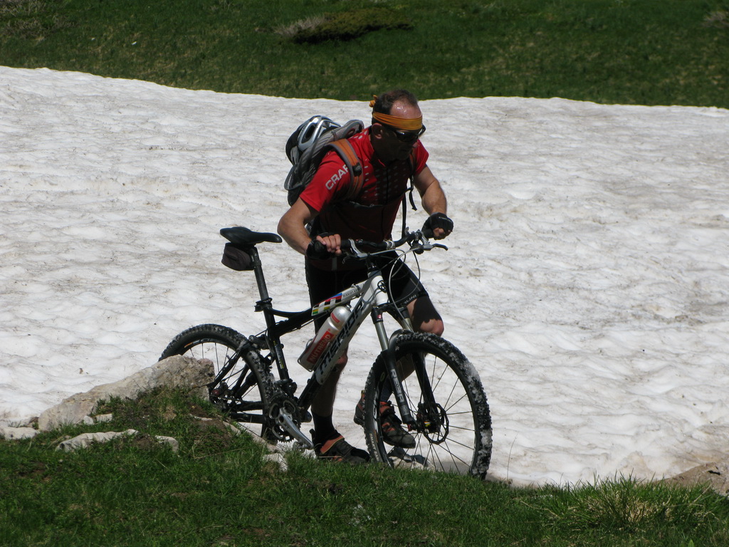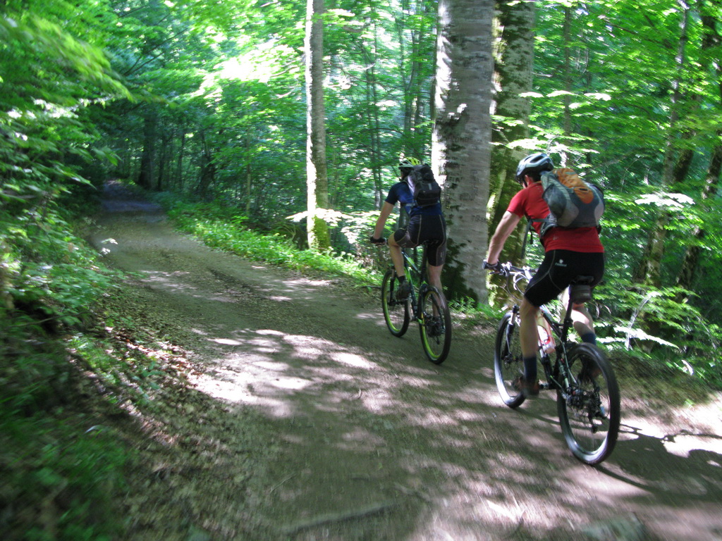 Nechal som sa zlákať na zjazd priamo ku kempu po ceste ktorou sme ráno stúpali hore. Už ráno sme si všimli, že serpentíny pretína turistický chodníček a tak sme si to okorenili aj náročným singlíkom.