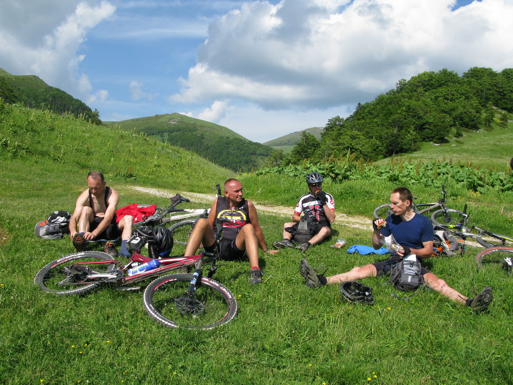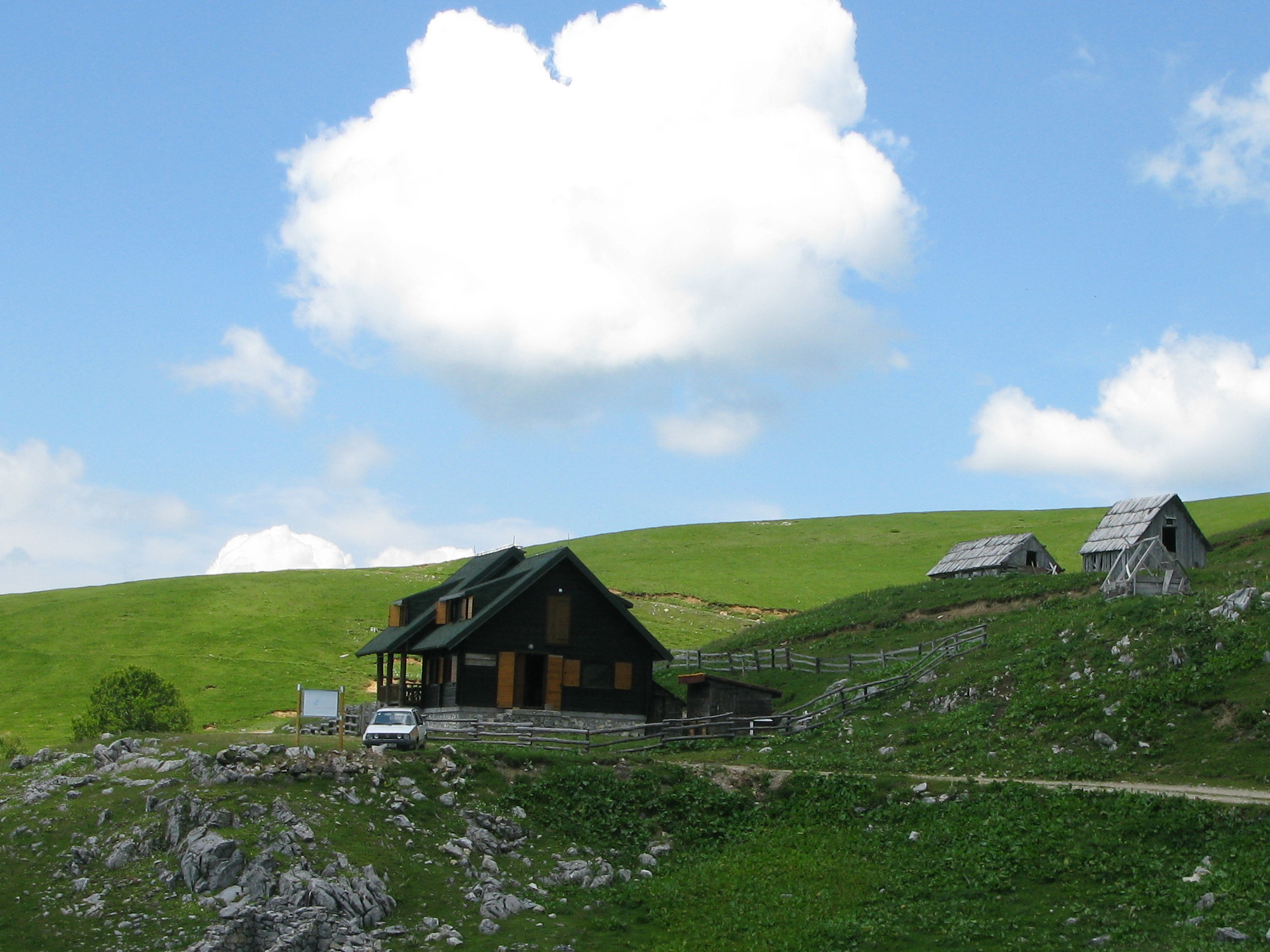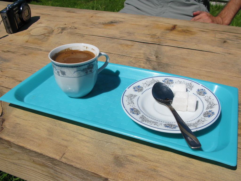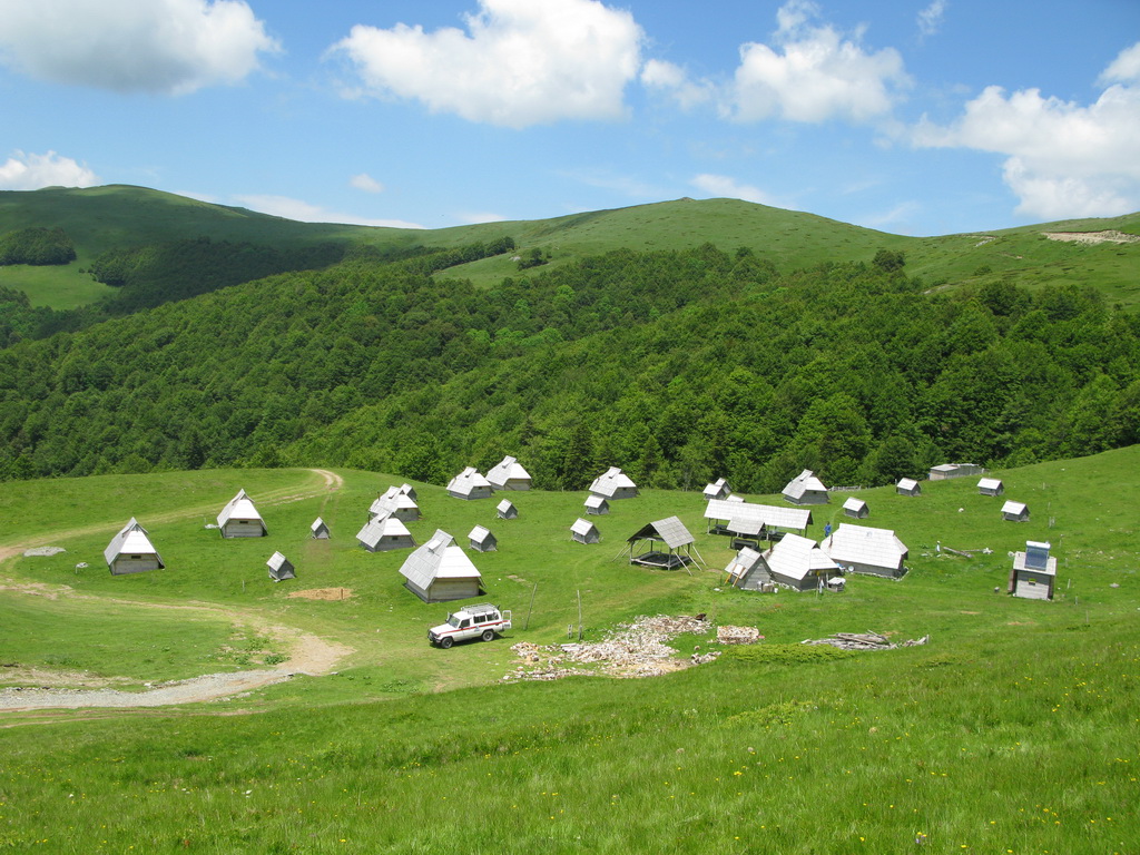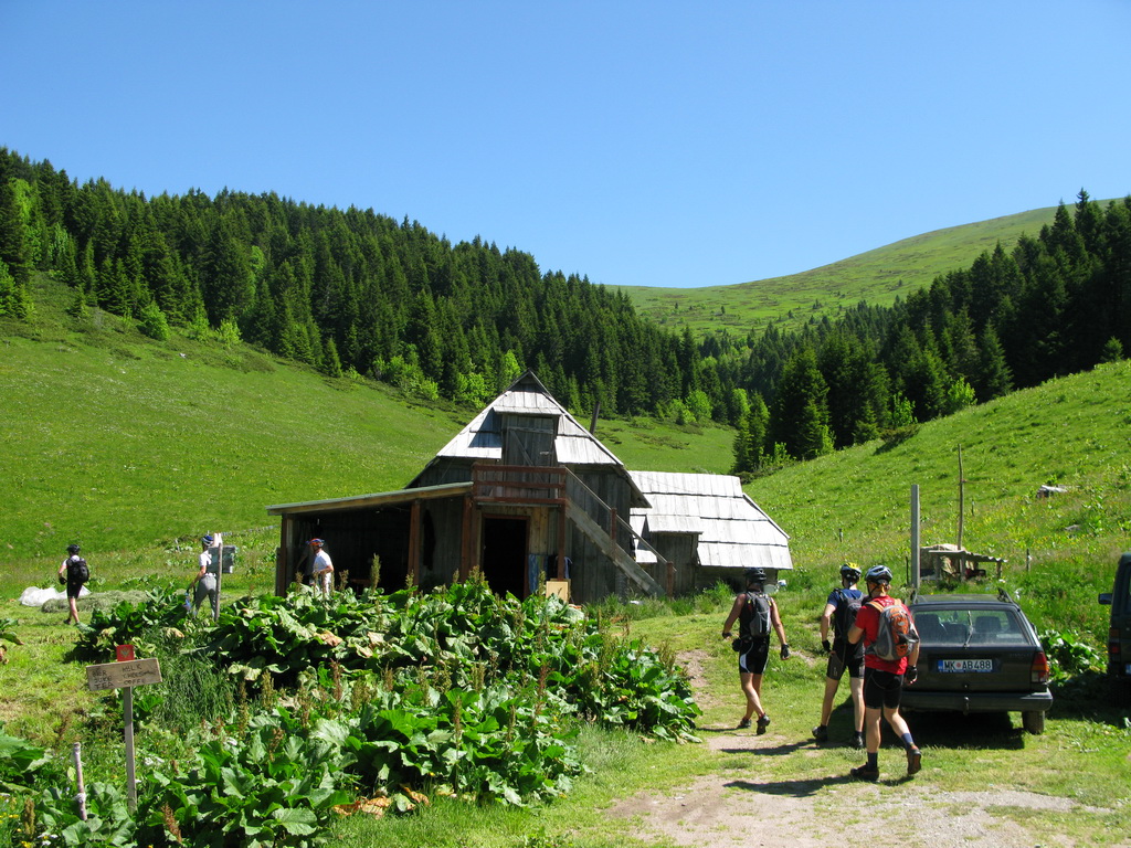 Cesta nás vymotajúc sa z lesa zaviedla až na pastviny pod hrebeňom. Tu sme už natrafili aj na prvé kravy a ovce. Bolo ich však poskromne, vzhľadom na veľkú rozlohu nekonečných pastvín. Pri salaši sme stretli prvých ľudí. Tabuľka nás zlákala na občerstvenie. Na ochutnávku sme si dali čerstvého syra a na tabuľke bol aj nápis Kava. Neodolal som a káva pripravená v džezve na piecke s horiacim drevom stála zato.